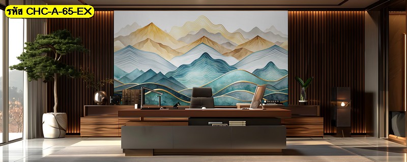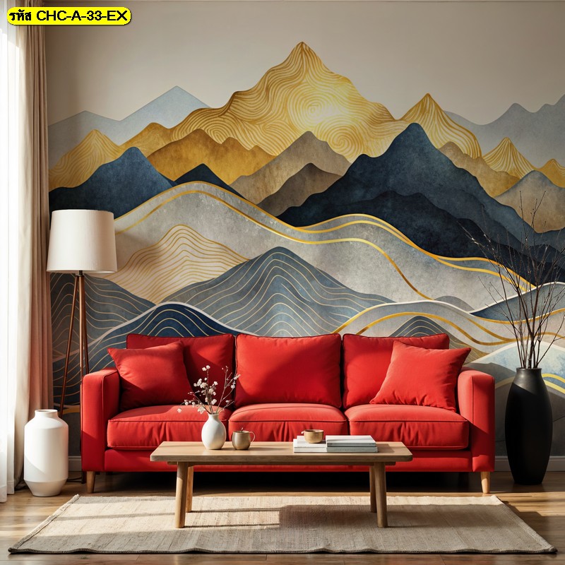 ดีไซน์ที่สะท้อนความสำเร็จ วอลเปเปอร์ ลายเส้นกราฟิกภูเขาทอง ทันสมัยและดูแพงในทุกมุมมอง