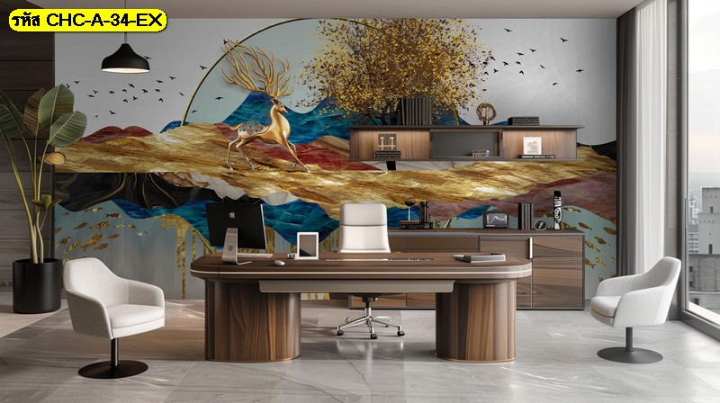 เสริมพลังความมั่งคั่ง วอลเปเปอร์ ภูเขาทองและกวางคู่ สีสันจัดจ้านดึงดูดทรัพย์และบารมี