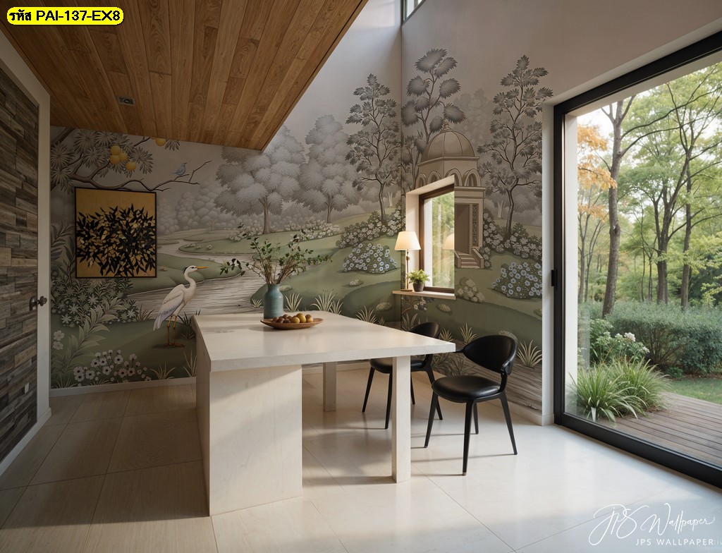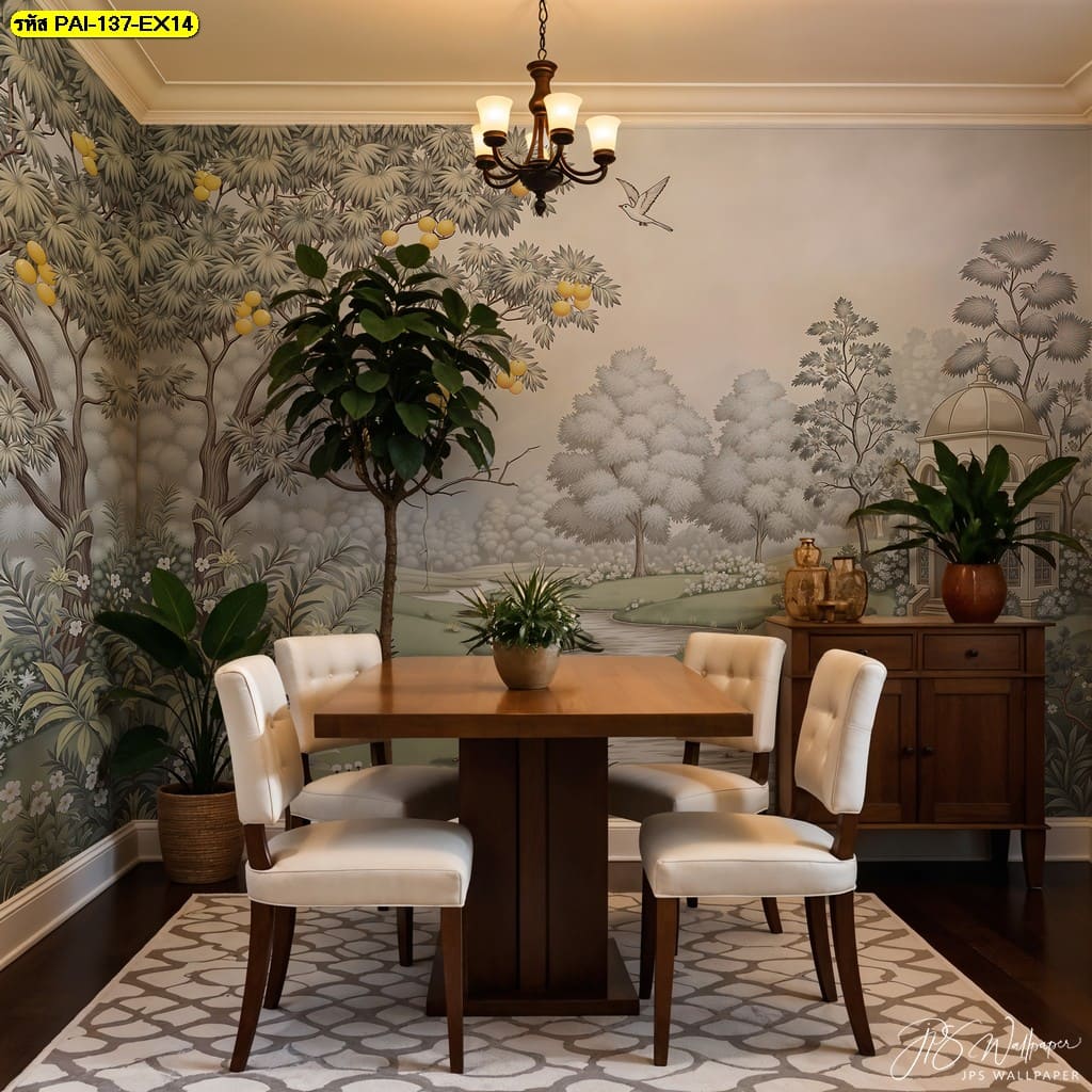 วอลเปเปอร์สวนป่า เติมบรรยากาศห้องอาหารให้ดูอบอุ่น คลาสสิก และน่านั่ง
