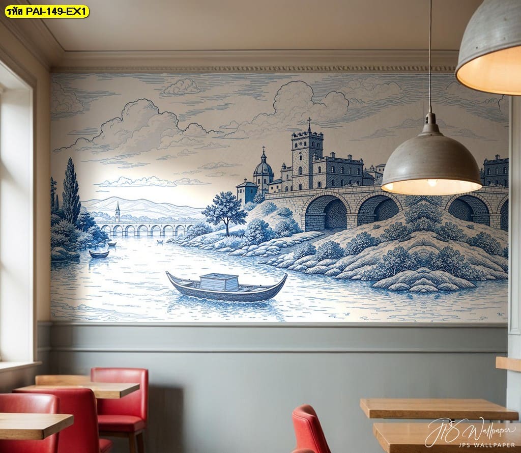 วอลเปเปอร์ลำธารและนกกระสา ถ่ายทอดความสงบงามของธรรมชาติให้ร้านอาหารดูสดชื่น