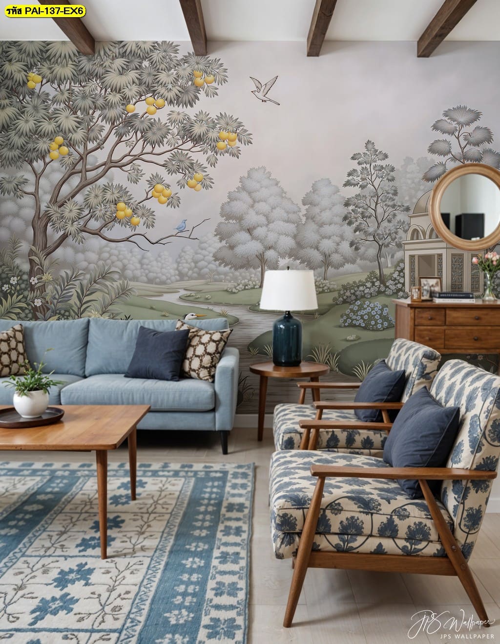 วอลเปเปอร์สวนป่า ถ่ายทอดความงามของธรรมชาติในห้องนั่งเล่น