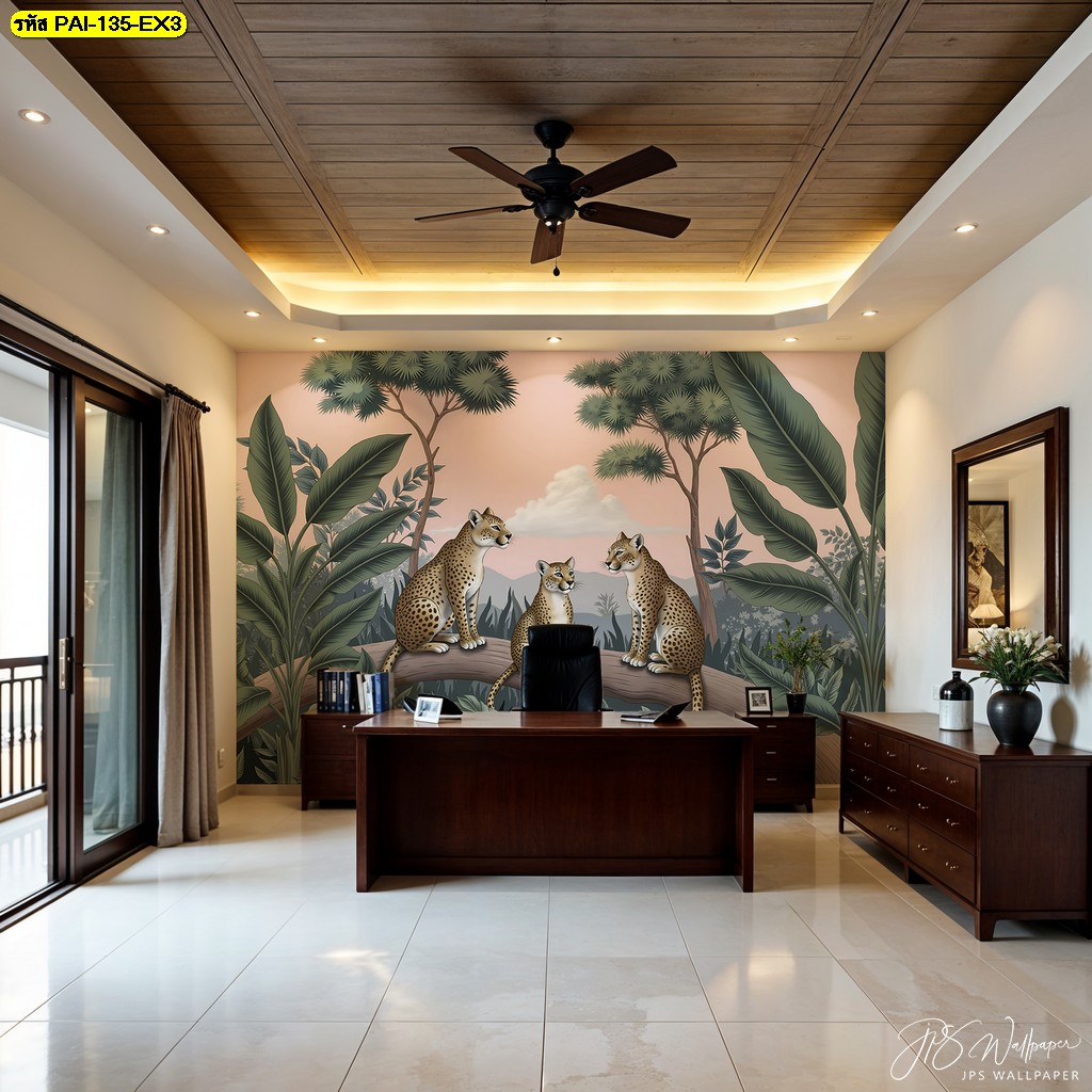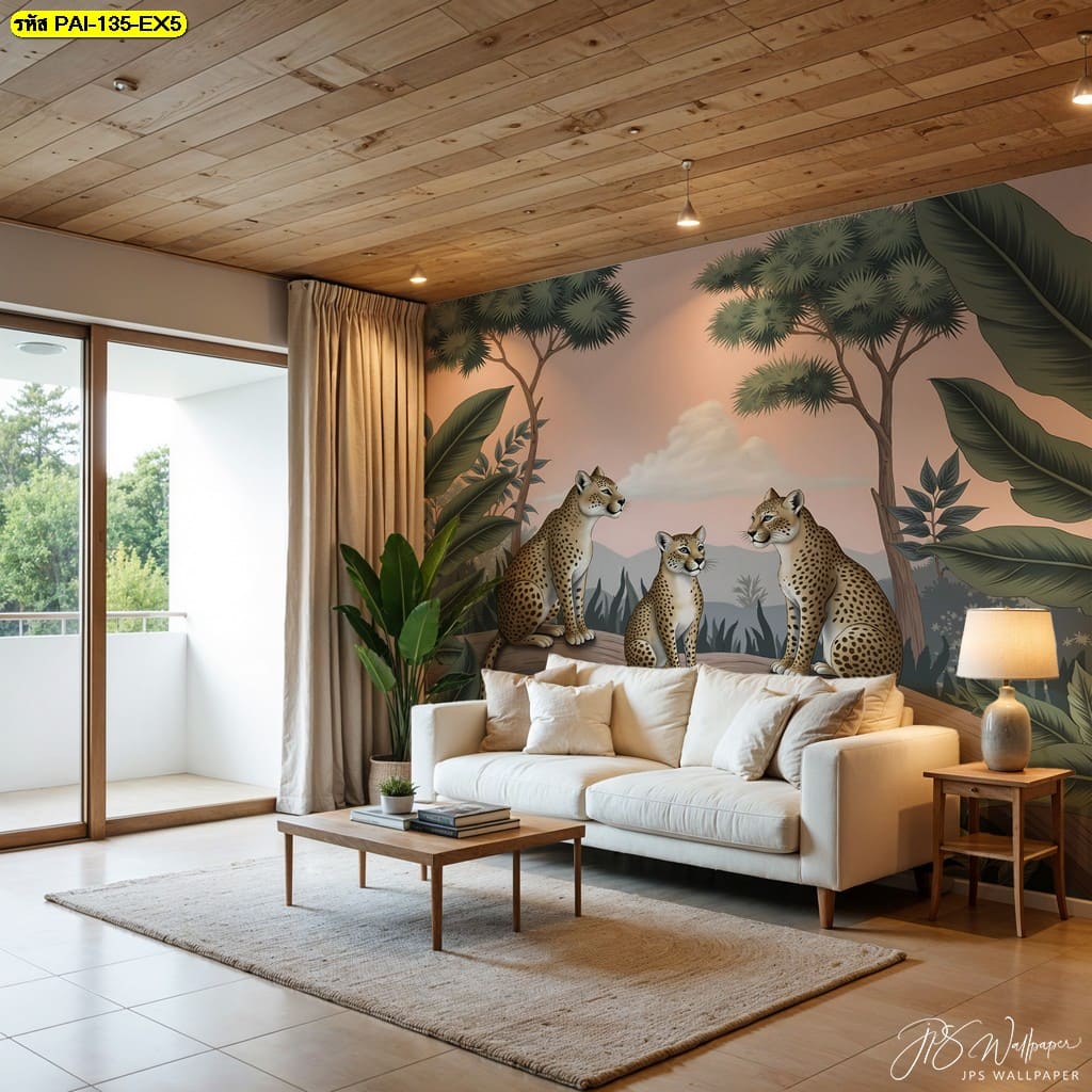 วอลเปเปอร์เสือดาว 3 ตัว สื่อถึงอำนาจและความมั่นใจ ผสานความงามแห่งธรรมชาติ