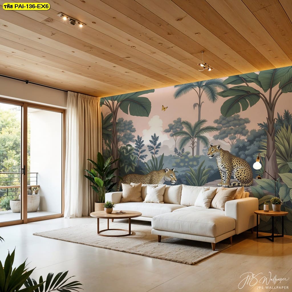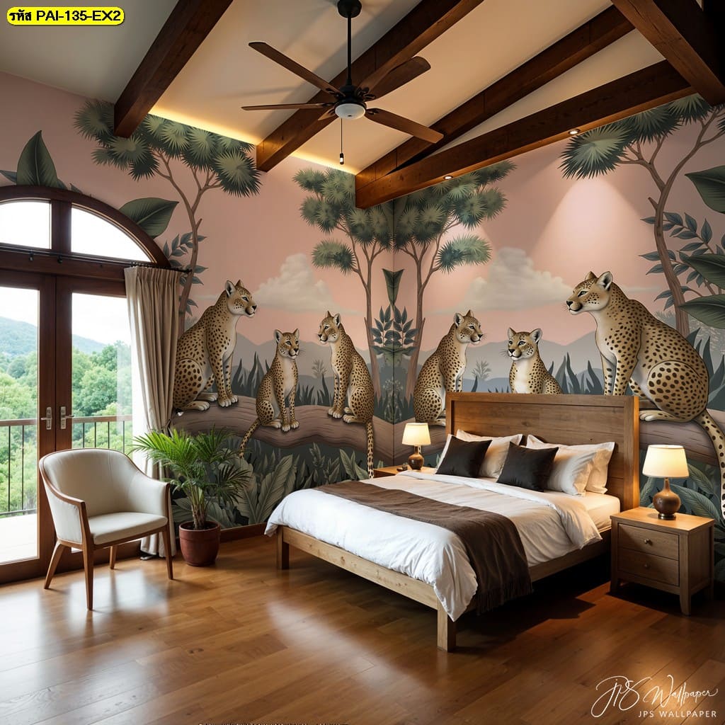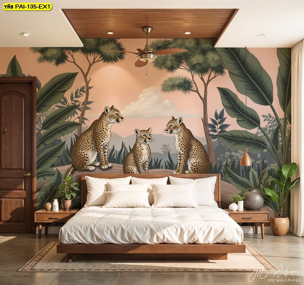 วอลเปเปอร์เสือดาวกลางสวนป่า ถ่ายทอดพลังและความสง่างาม เติมชีวิตให้ห้องนอนดูหรูหรา