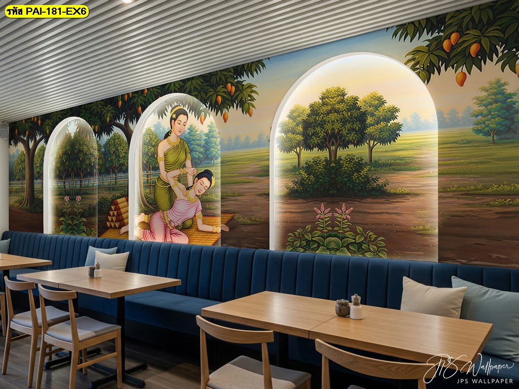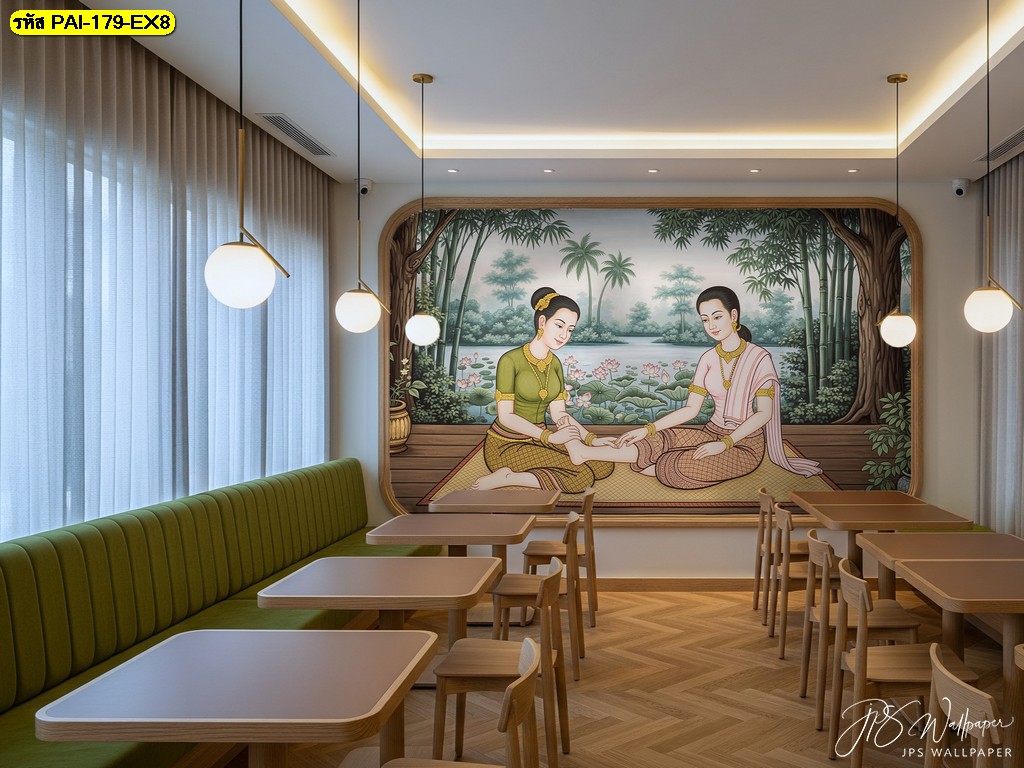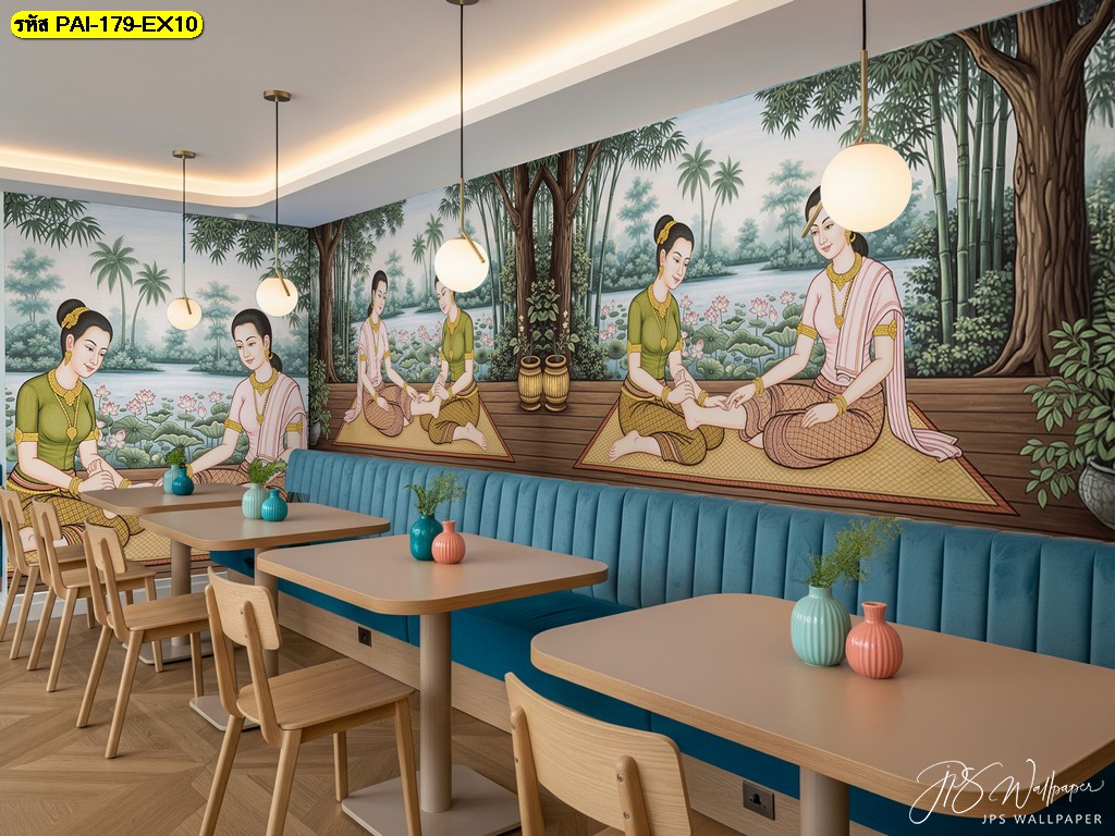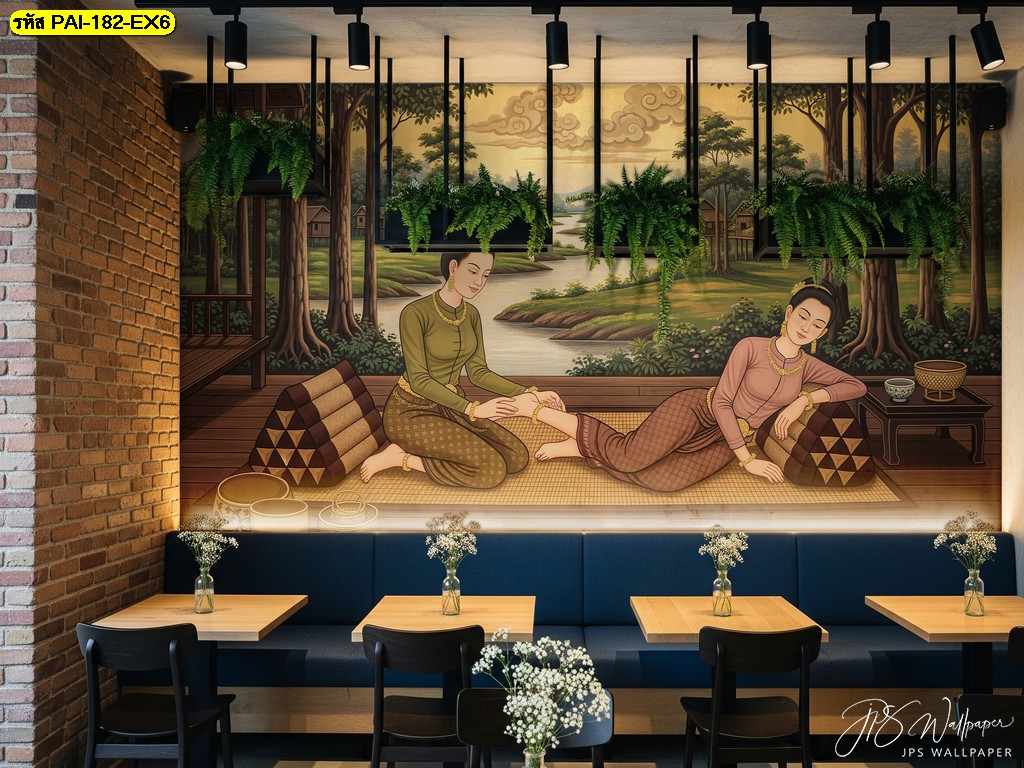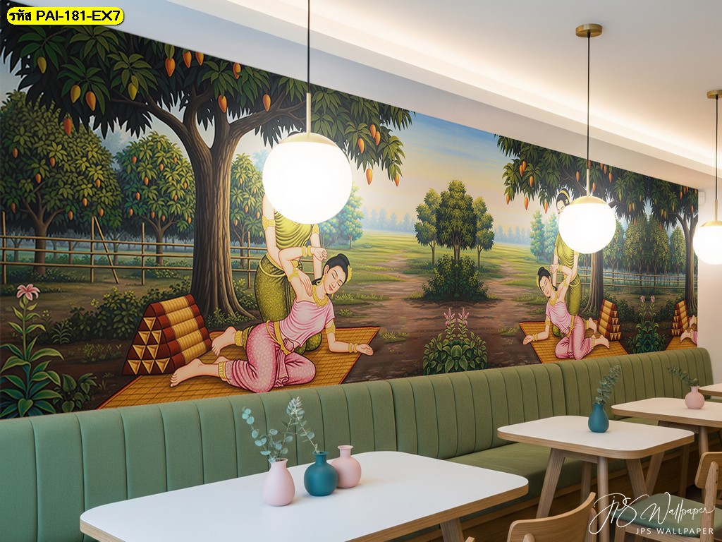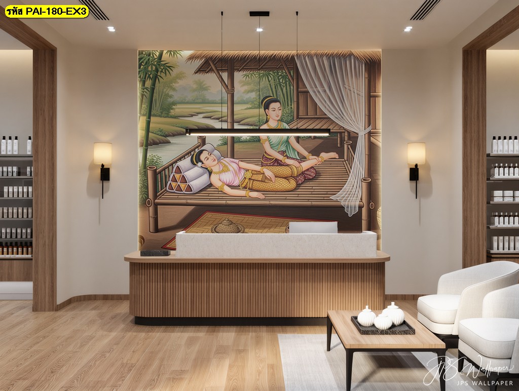 สัมผัสเสน่ห์วิถีไทยผ่าน วอลเปเปอร์ ภาพวาดการนวดผ่อนคลาย ช่วยเติมเต็มบรรยากาศให้ร้านดูมีเรื่องราว