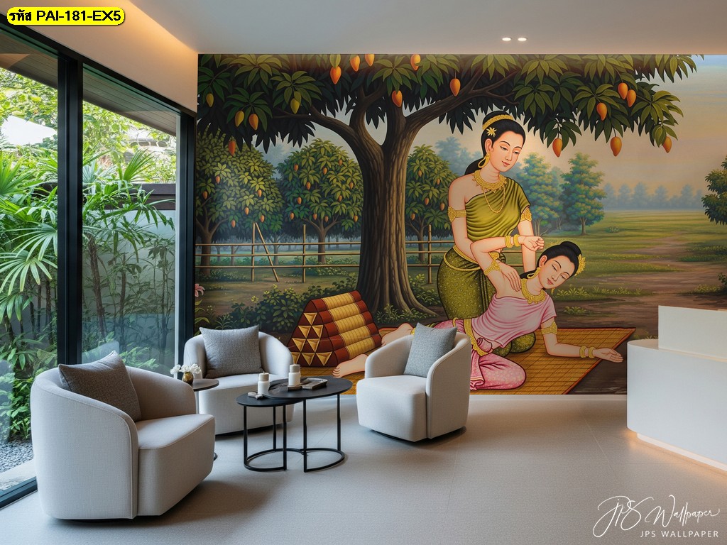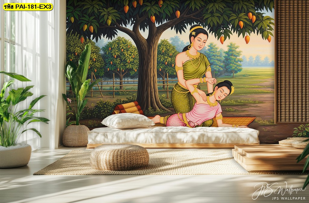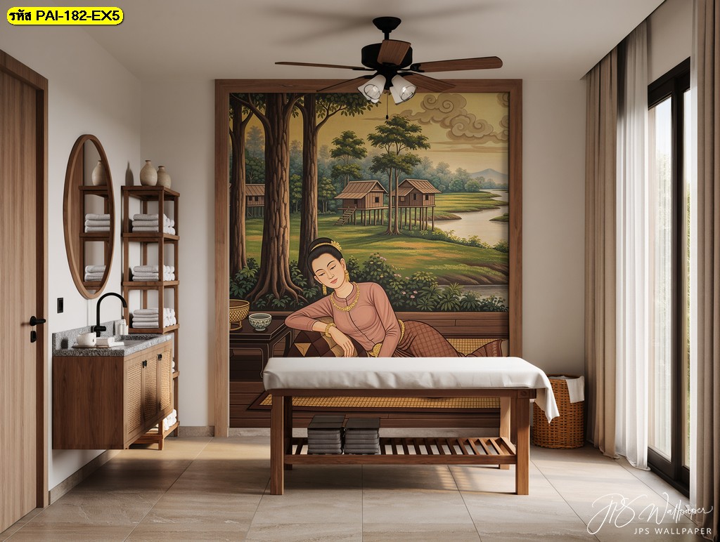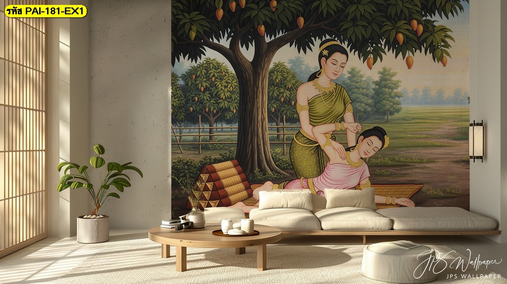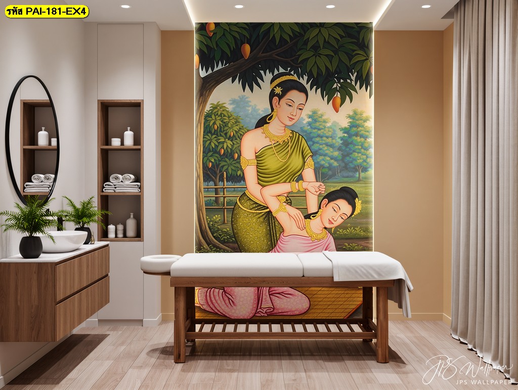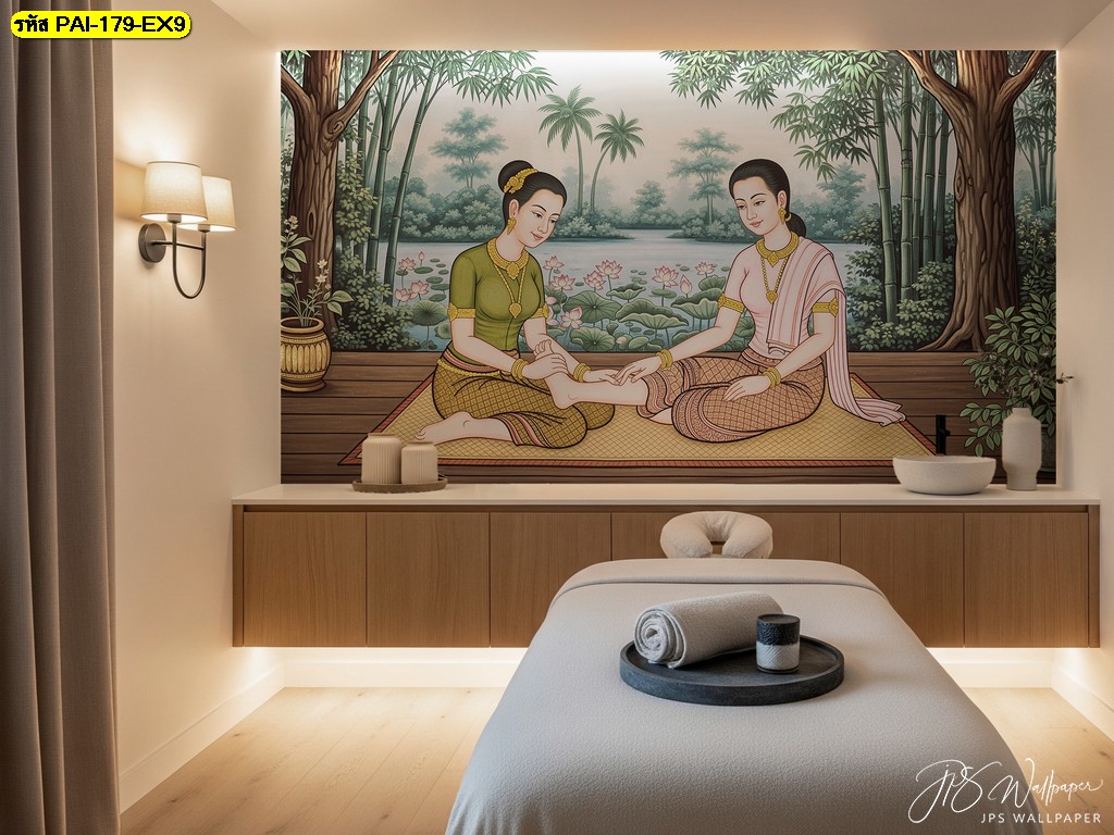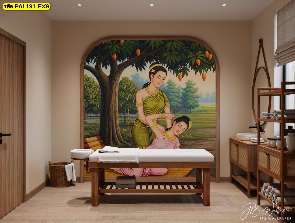 วอลเปเปอร์ฉากไทยโบราณถ่ายทอดศาสตร์การนวดอย่างอ่อนโยน เติมพลังบรรยากาศห้องให้ผ่อนคลายอบอุ่น