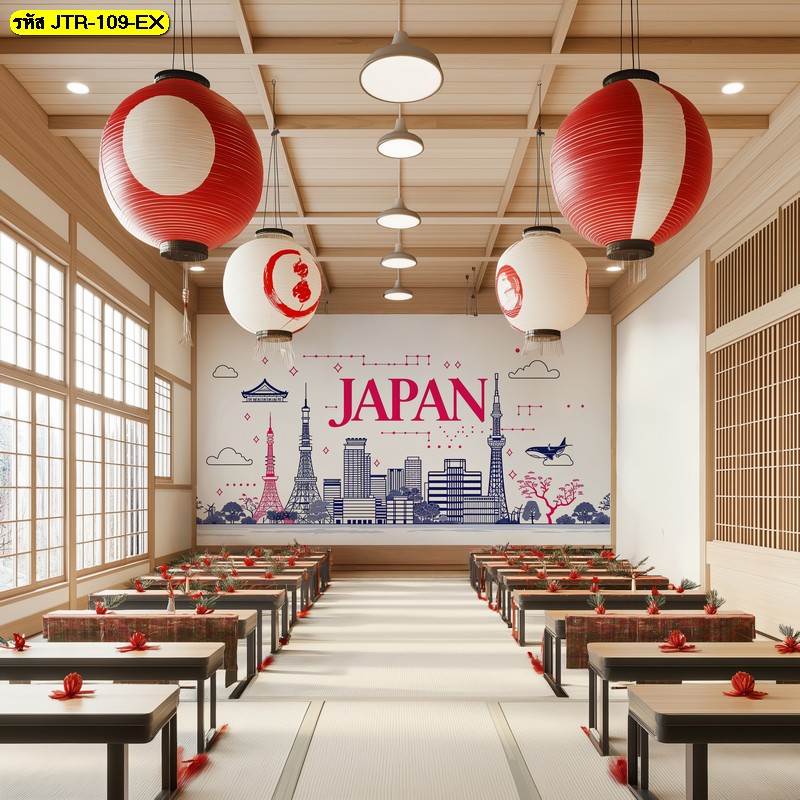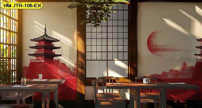 วอลเปเปอร์เส้นกราฟิกแดงสไตล์เมืองญี่ปุ่น เพิ่มความสนุกและลุคเท่ให้คาเฟ่หรือร้านอาหารแบบร่ว