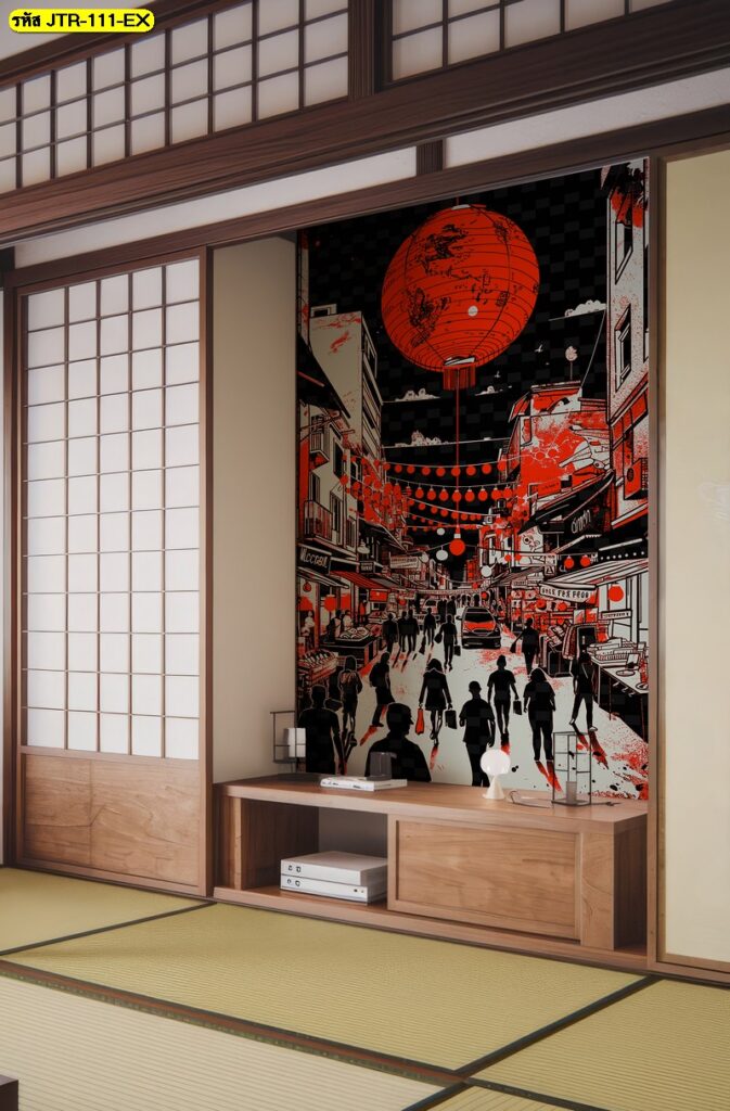 วอลเปเปอร์ถนนญี่ปุ่นสไตล์กราฟิกแดงดำ ให้พลังเท่ทันสมัย เพิ่มอารมณ์ร้านญี่ปุ่นแบบสตรีท