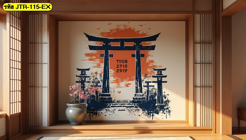 วอลเปเปอร์โทริอิศิลปะแปรงพู่กัน สวยเด่นแบบญี่ปุ่นร่วมสมัย เหมาะสำหรับร้าน Izakaya, ร้านปิ้งย่าง หรือห้องสไตล์ Japanese Modern