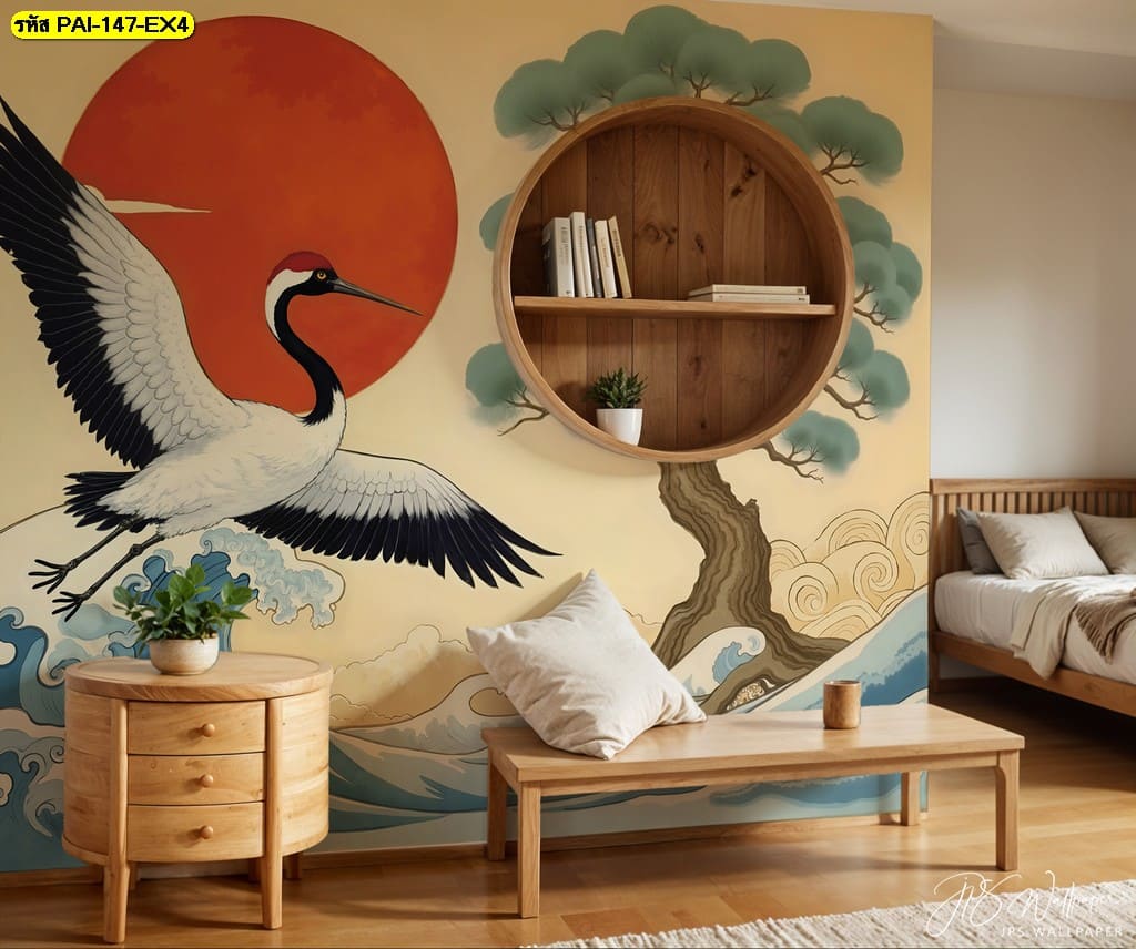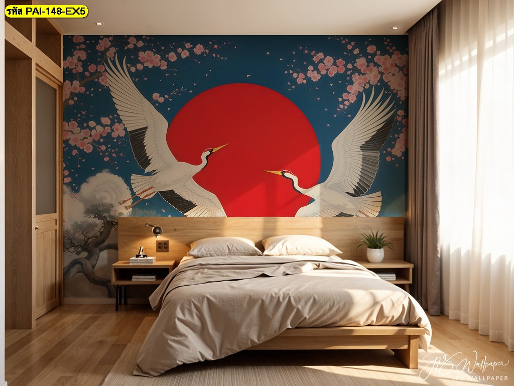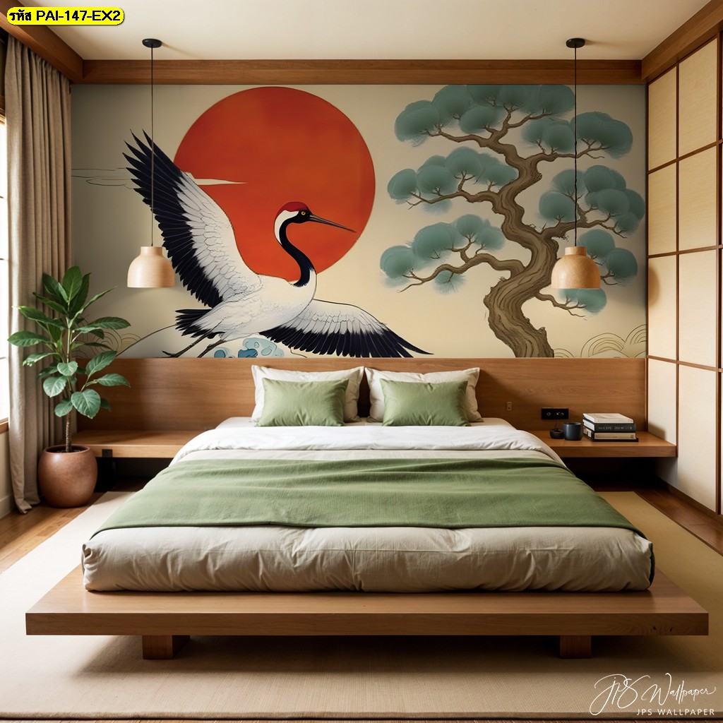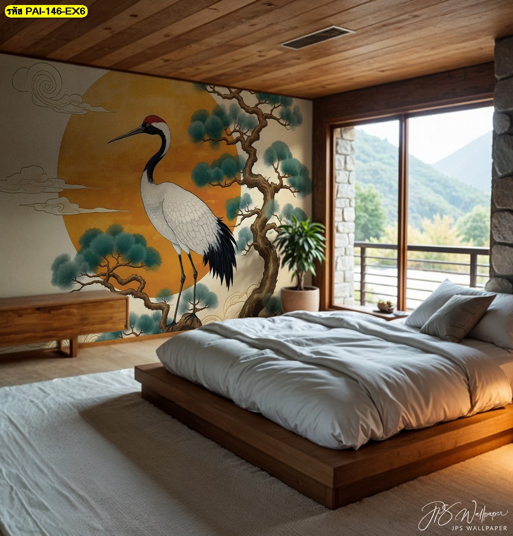 วอลเปเปอร์นกกระเรียนญี่ปุ่น เติมบรรยากาศสงบในห้องนอน
