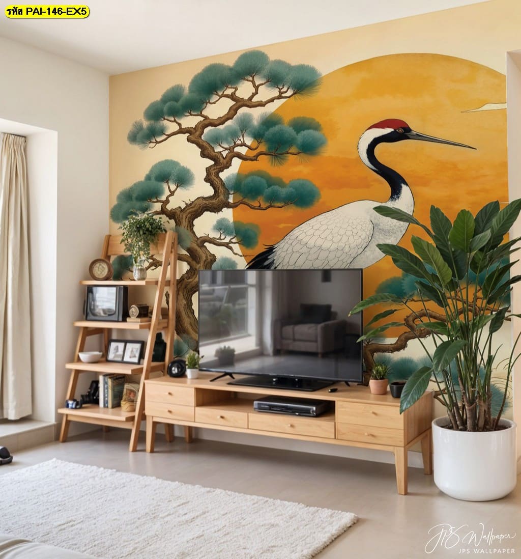 วอลเปเปอร์ติดผนังลายนกกระเรียนเติมบรรยากาศห้อง