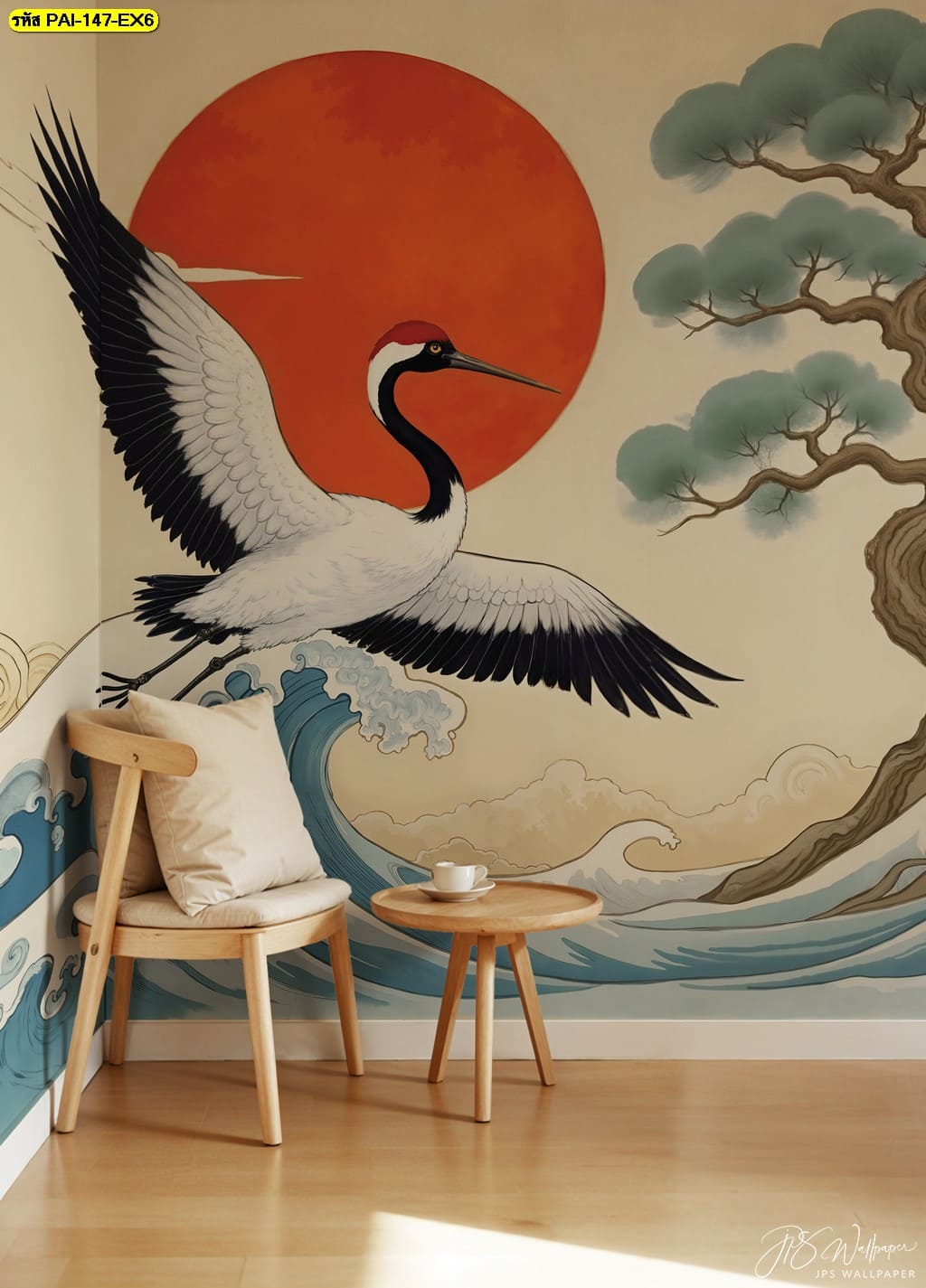 วอลเปเปอร์สั่งพิมพ์ลายนกกระเรียนญี่ปุ่น แต่งห้องให้สวยโดดเด่น