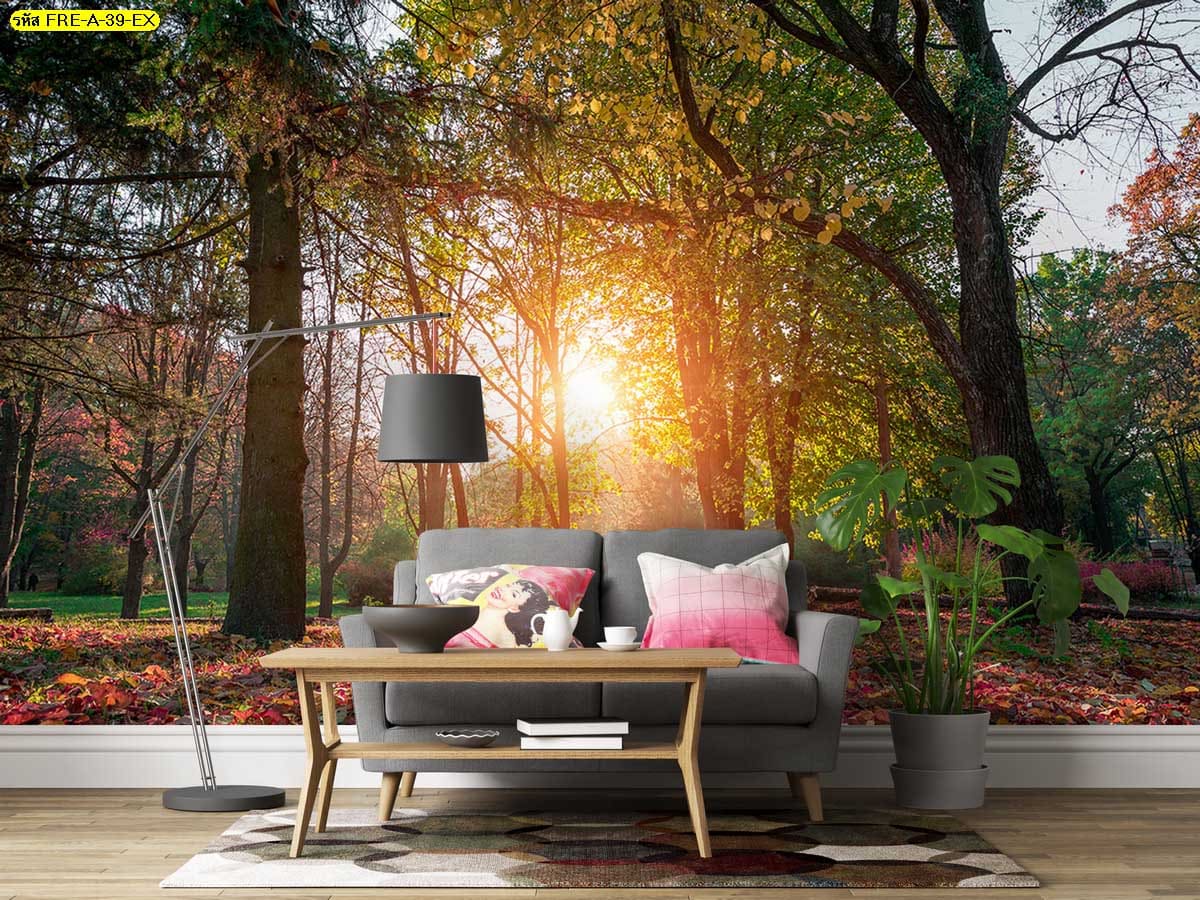 วอลเปเปอร์ป่าใบไม้เปลี่ยนสี เพิ่มความสดใสให้ผนัง สร้างบรรยากาศมีชีวิตและอบอุ่น