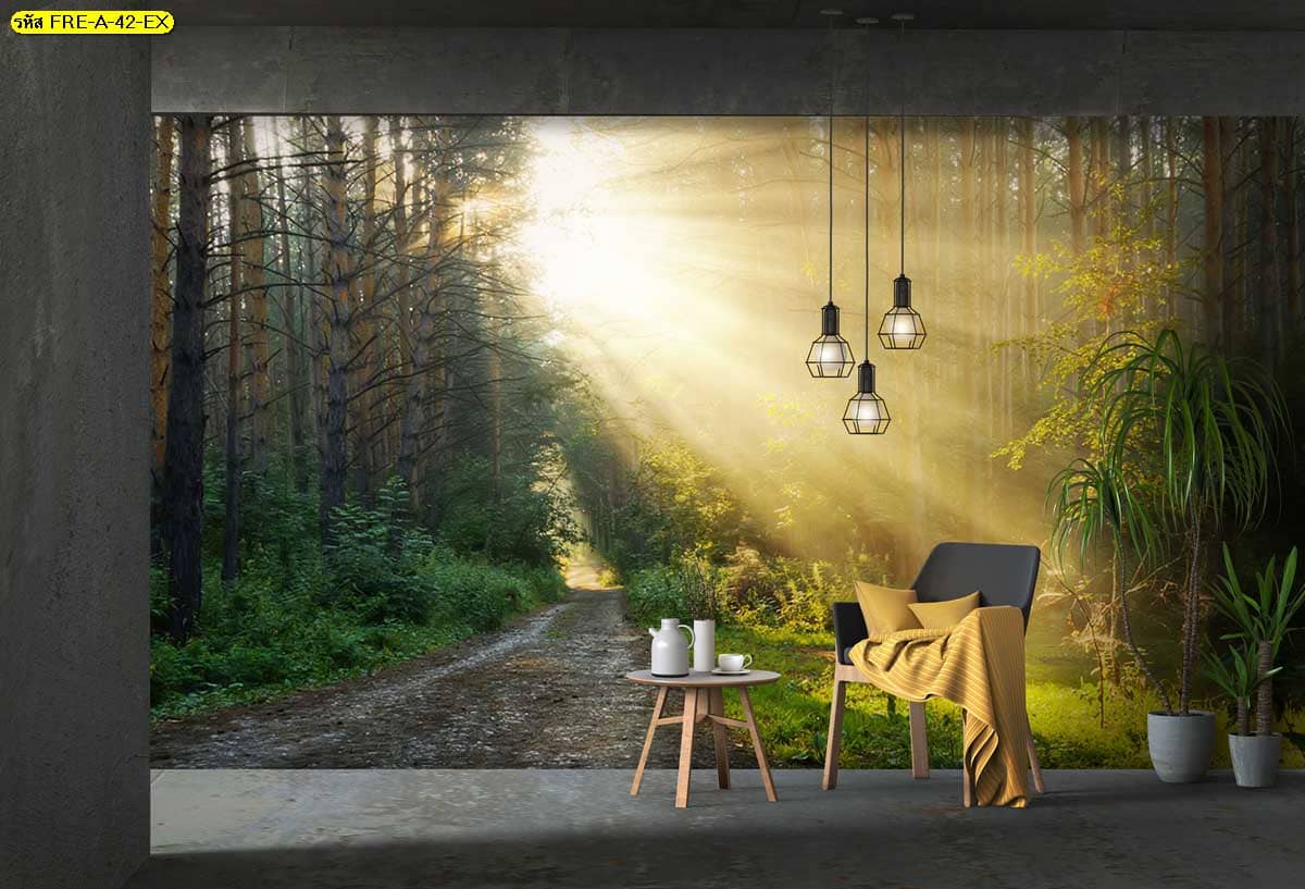 วอลเปเปอร์แสงแดดยามเช้าในป่า เพิ่มความสว่างให้ผนัง สร้างมุมพักผ่อนที่ดูสดชื่นและมีพลัง