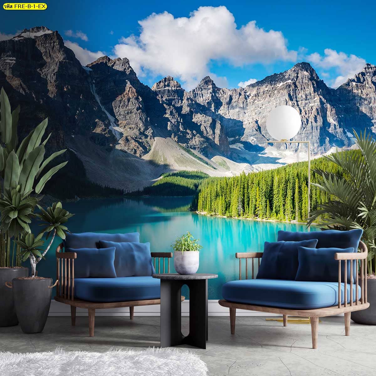 วอลเปเปอร์ภูเขาและทะเลสาบสีฟ้า เพิ่มมิติผนังให้ห้องดูเปิดโล่ง สบายตาและผ่อนคลาย