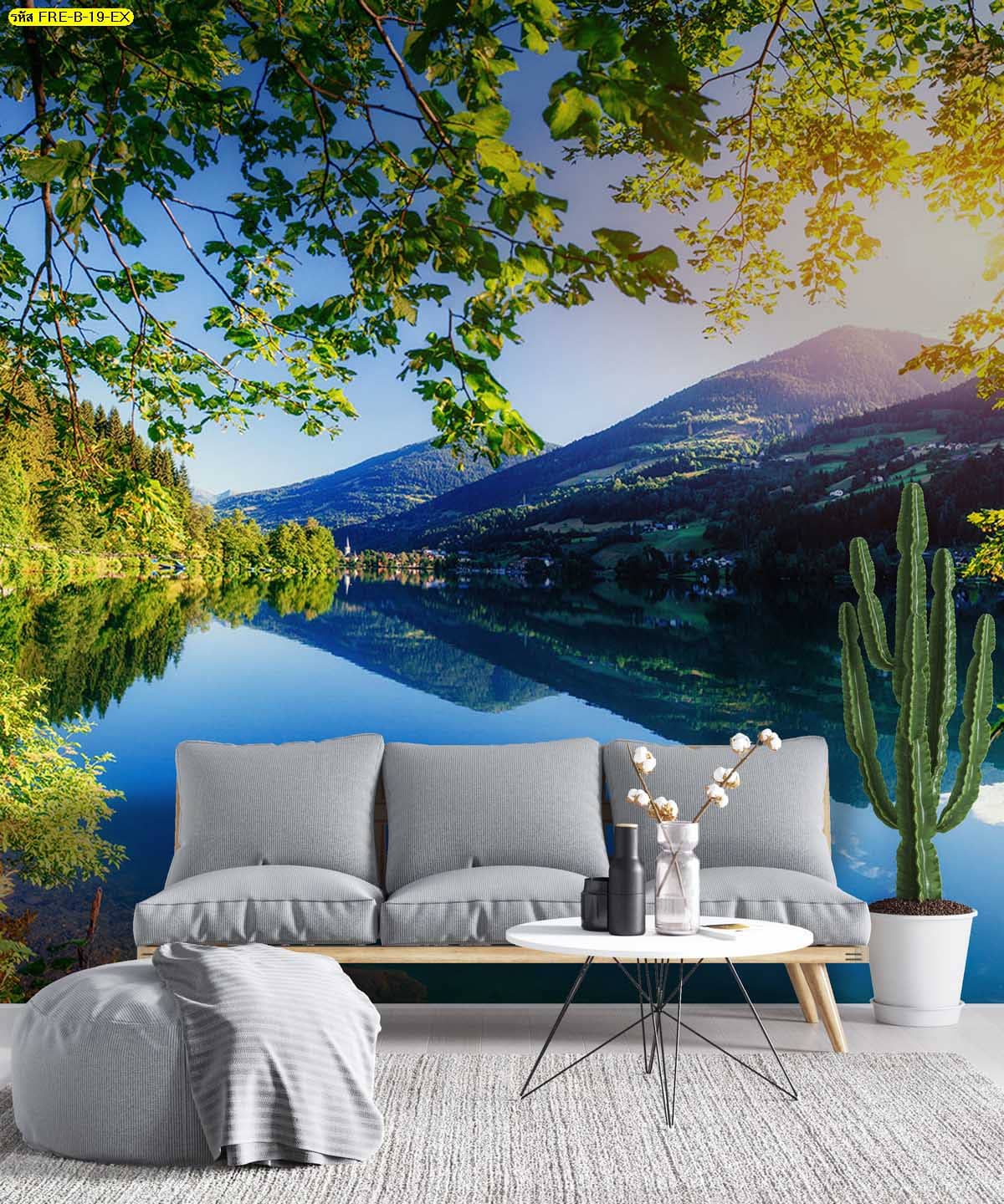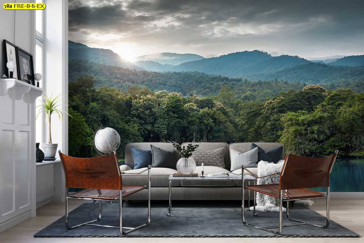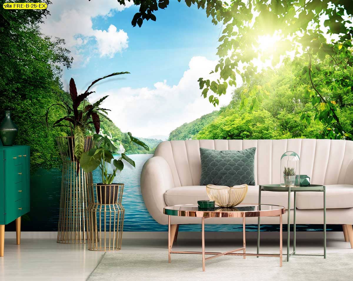 วอลเปเปอร์วิวแม่น้ำและภูเขา เพิ่มความสดชื่นให้ผนังห้องนั่งเล่น ดูโปร่งและสบายตา
