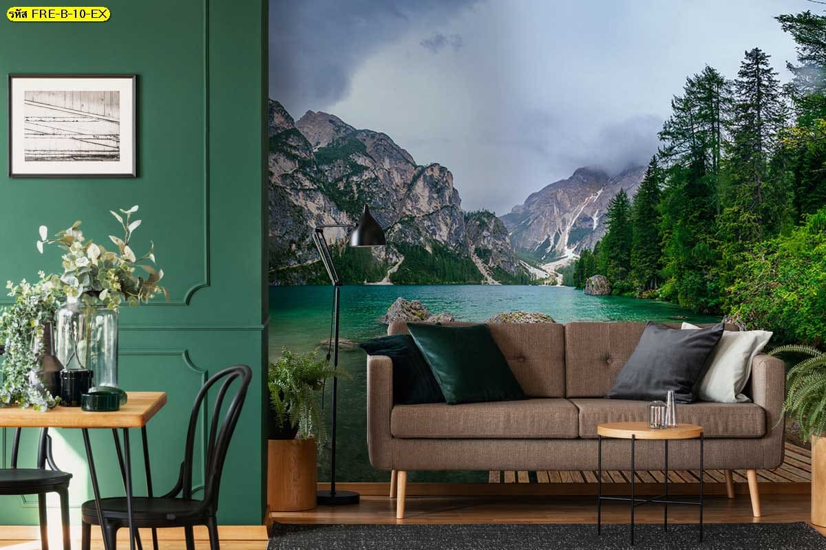 วอลเปเปอร์ทะเลสาบภูเขาโทนเขียว เพิ่มมิติผนังห้องให้ดูสงบและกลมกลืนกับธรรมชาติ