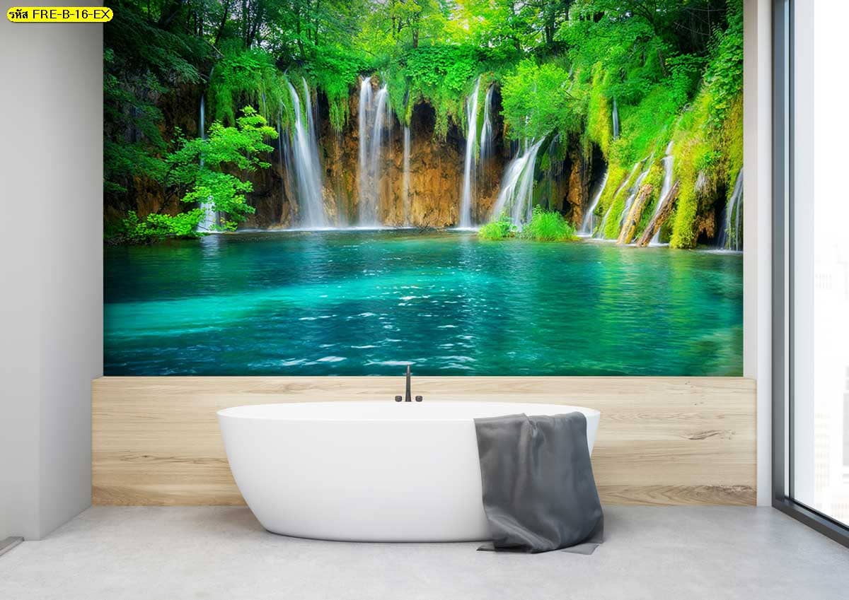วอลเปเปอร์น้ำตกเขียวสด เพิ่มความสดชื่นให้ห้องนอน สร้างจุดเด่นผนังแบบธรรมชาติเต็มพื้นที่