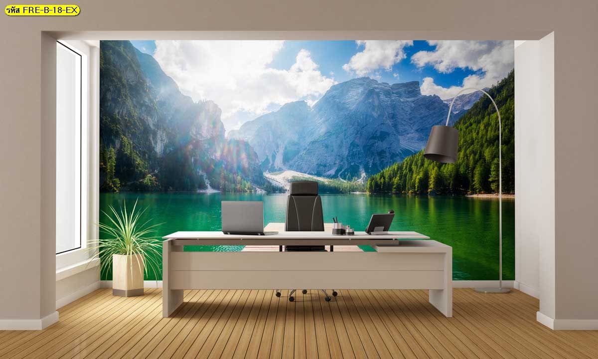 วอลเปเปอร์ทะเลสาบภูเขา เพิ่มความลึกให้ผนังออฟฟิศ สร้างบรรยากาศโปร่งและสบายตา