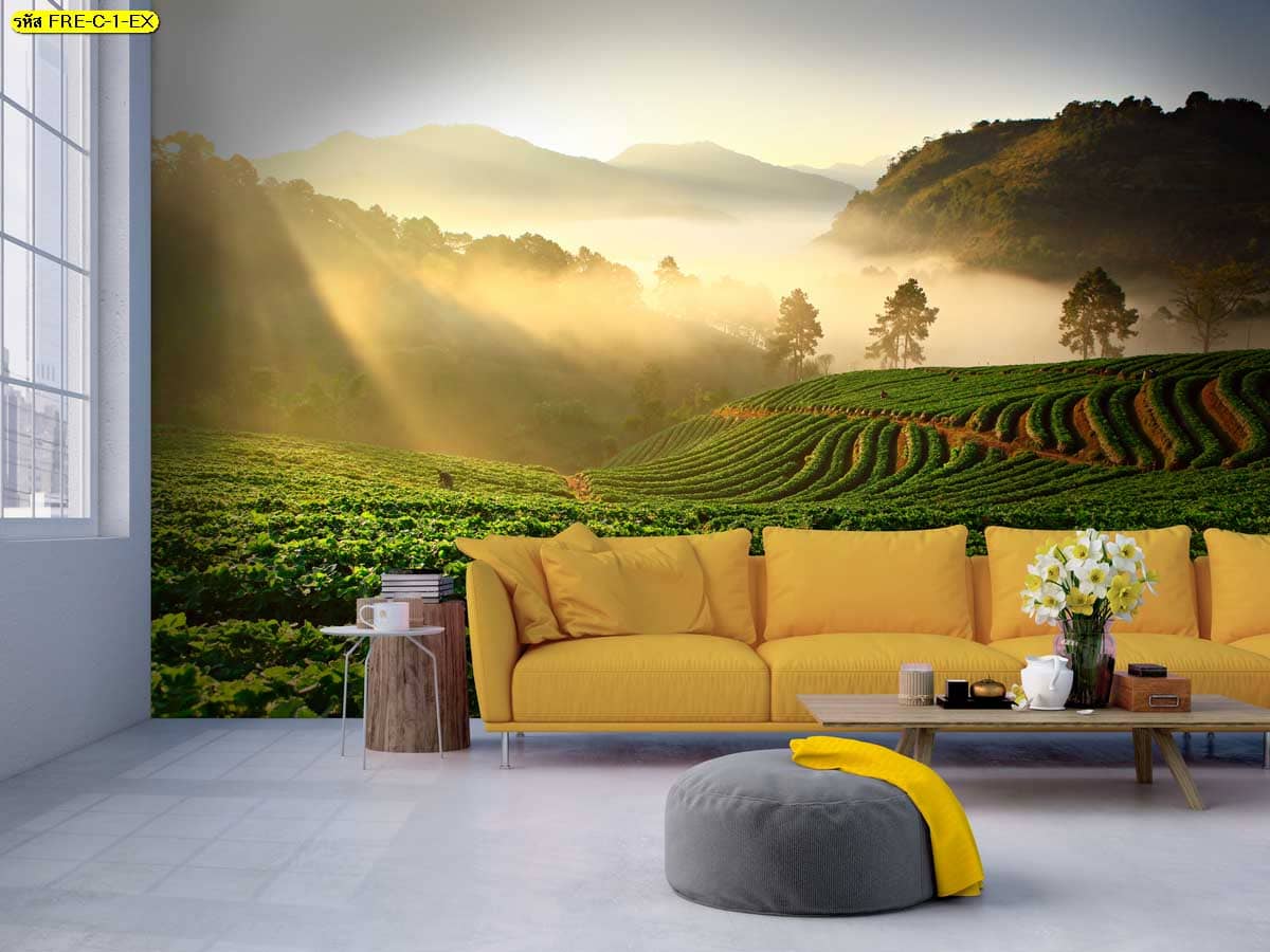 วอลเปเปอร์ไร่ชาและหมอกยามเช้า เพิ่มบรรยากาศอบอุ่นให้ผนังห้อง ดูนุ่มนวลและผ่อนคลาย