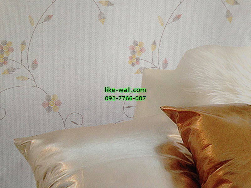 วอลเปเปอร์ติดผนังลายดอกไม้สีขาว พื้นสีเผือก