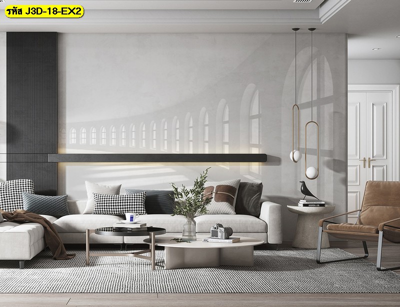 วอลเปเปอร์ทางเดินโค้งแสงนุ่ม ช่วยสร้างมุมมองลึกและบรรยากาศโปร่งสบาย เติมความโมเดิร์นให้พื้นที่ทันที