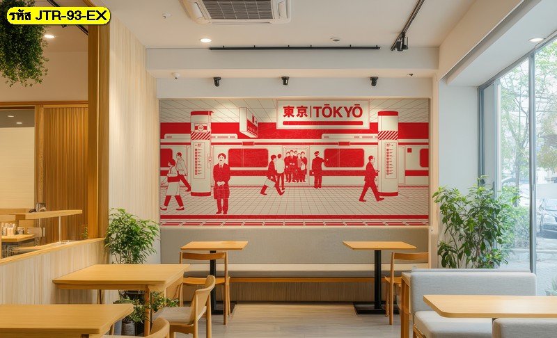 วอลเปเปอร์สถานีรถไฟสไตล์กราฟิกแดง ช่วยสร้างบรรยากาศญี่ปุ่นทันสมัย ทำให้ร้านดูมีเรื่องราวแล