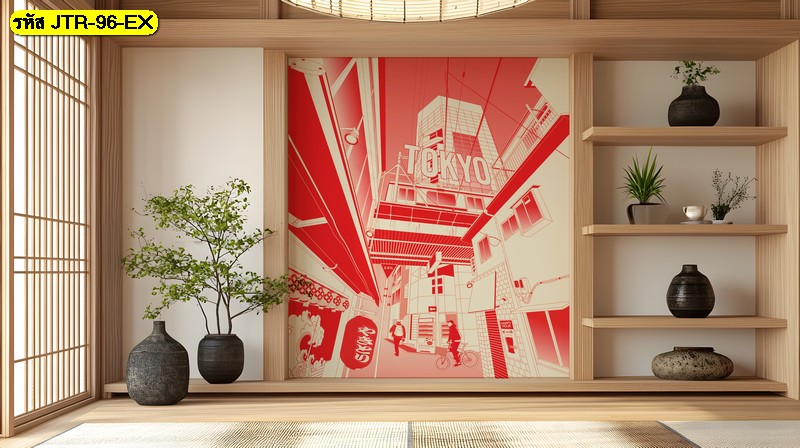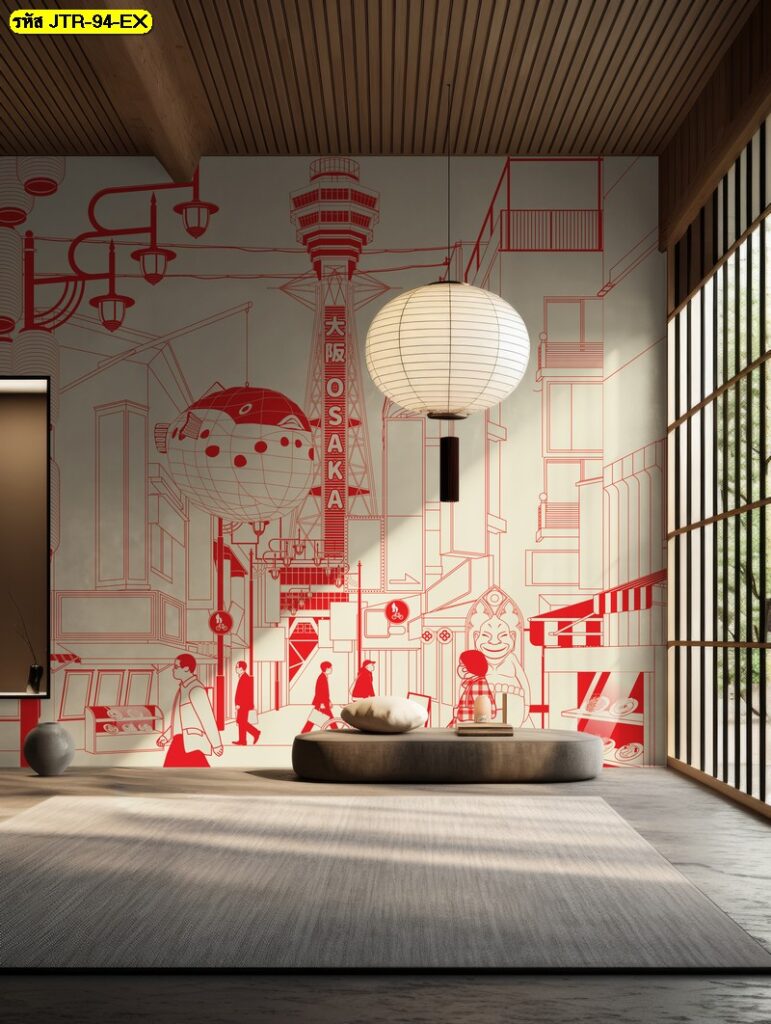 วอลเปเปอร์เส้นกราฟิกแดงสไตล์เมืองญี่ปุ่น เพิ่มความสนุกและลุคเท่ให้คาเฟ่หรือร้านอาหารแบบร่ว
