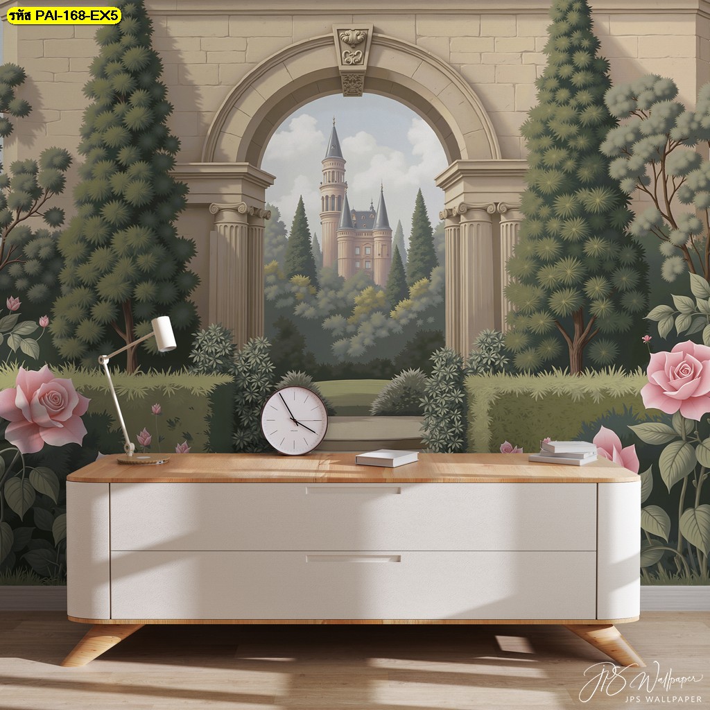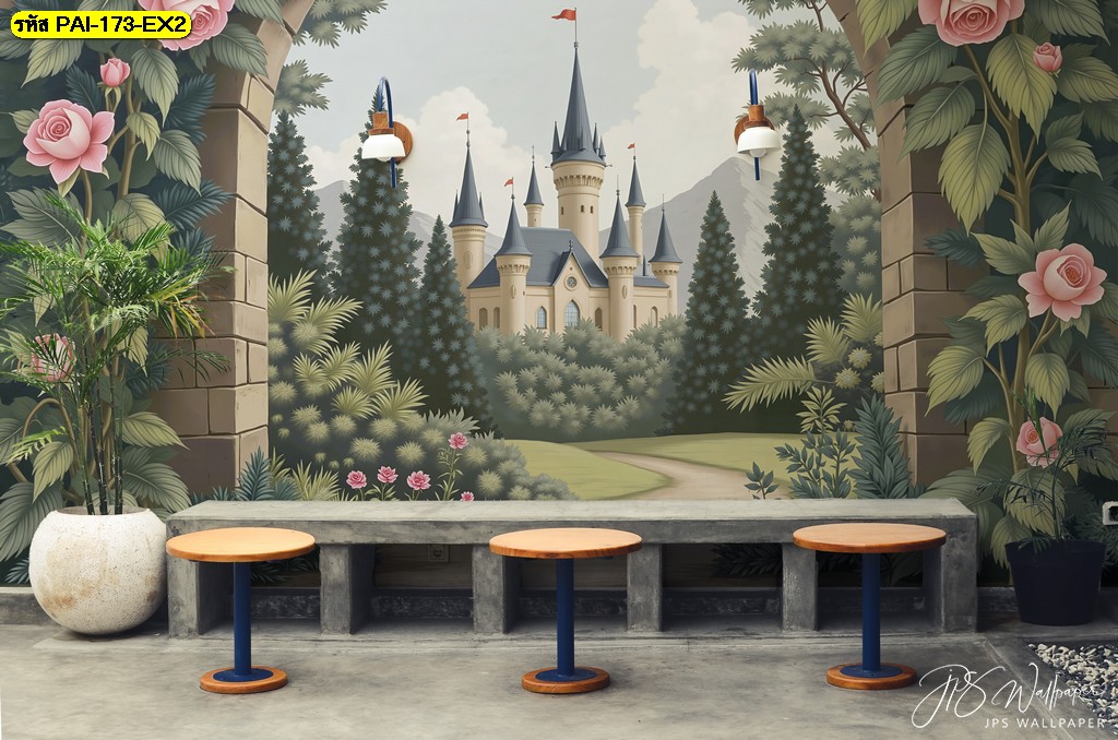วอลเปเปอร์ซุ้มปราสาทยุโรปในสวน เติมเสน่ห์โรแมนติกให้ร้านอาหาร คาเฟ่ และพื้นที่พักผ่อน