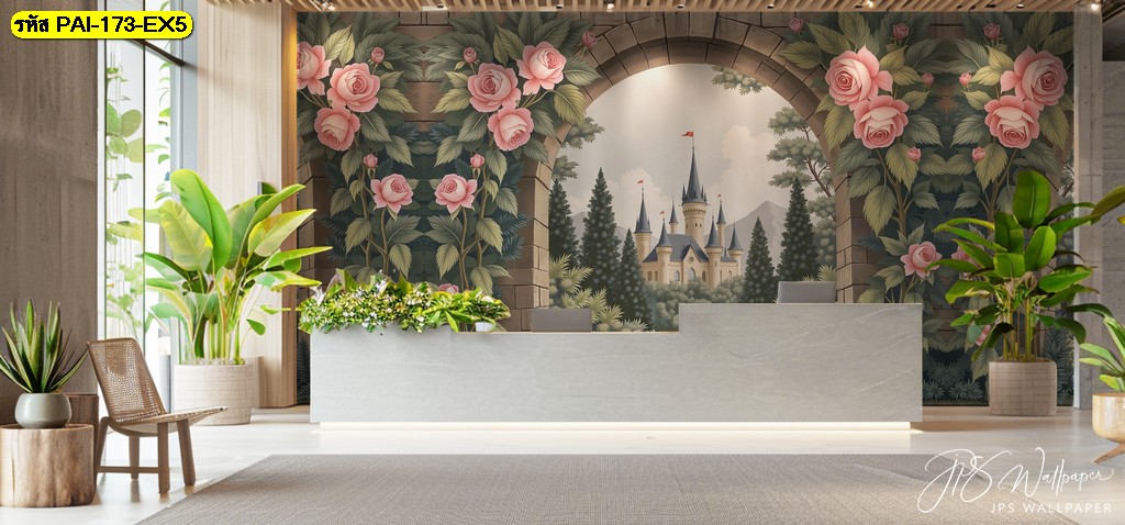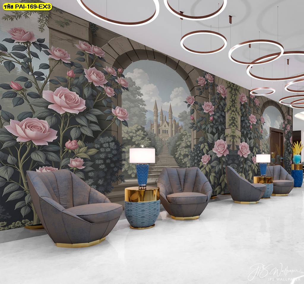 วอลเปเปอร์โถงสวนกุหลาบสไตล์ยุโรป เติมความโอ่อ่าหรูหราให้ห้องรับรองหรือโถงสำนักงาน