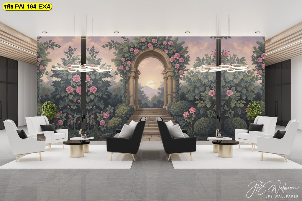 วอลเปเปอร์ซุ้มสวนดอกไม้แนวโรมัน สื่อถึงความหรูสงบ เติมความสมดุลให้ห้องรับรองหรือสำนักงาน