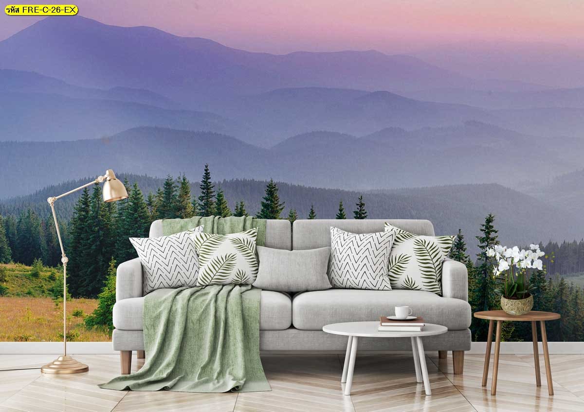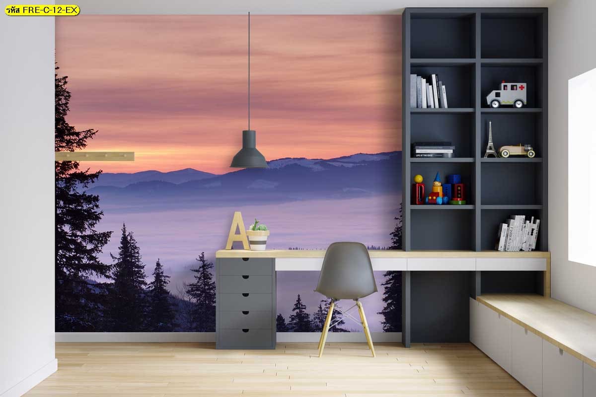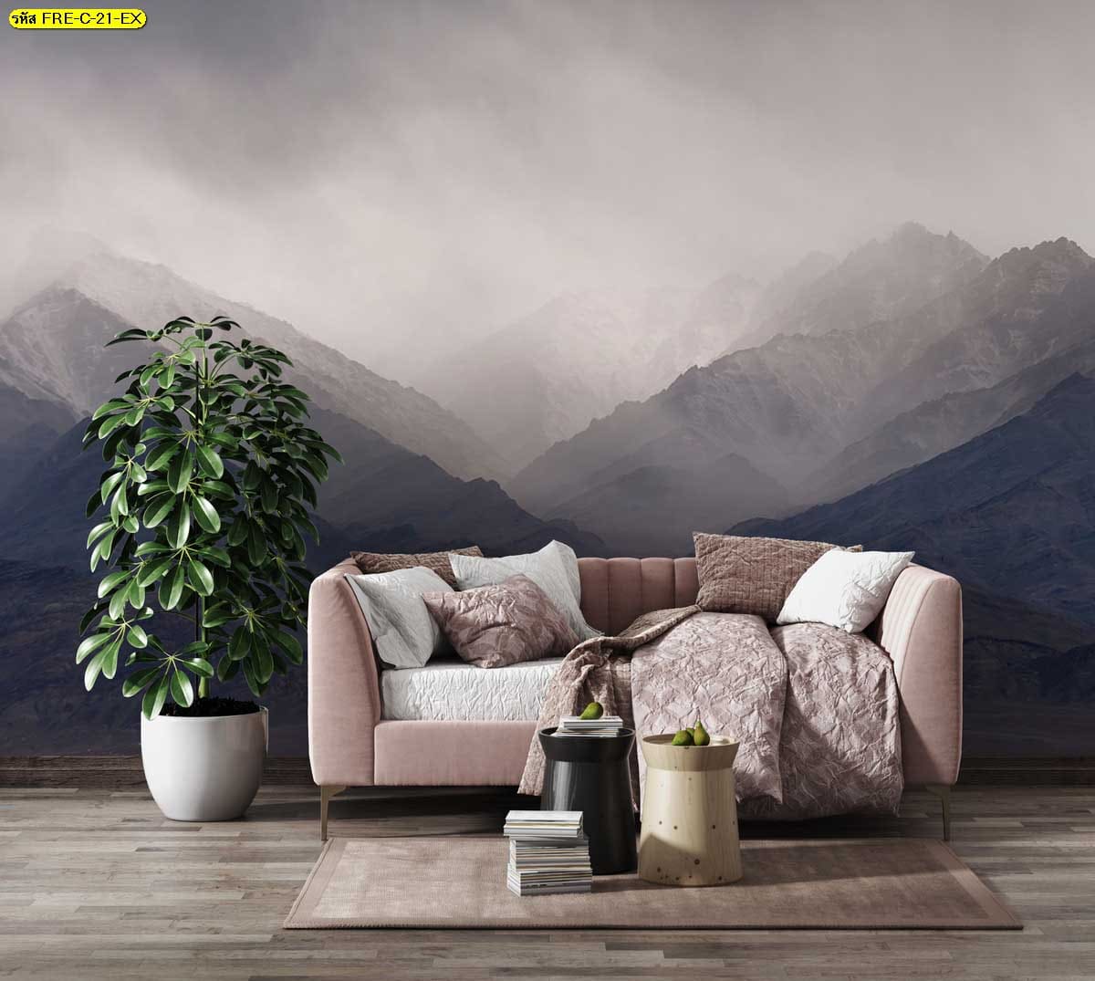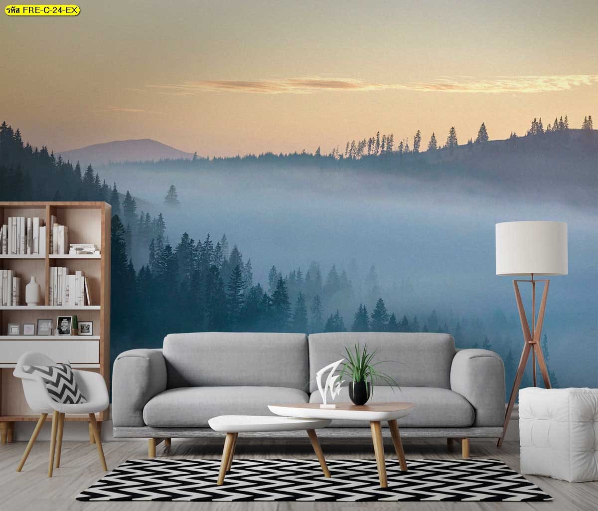 วอลเปเปอร์วิวภูเขาหมอกยามเย็น เพิ่มความนุ่มลึกให้ผนังห้อง ดูสงบและมีมิติ