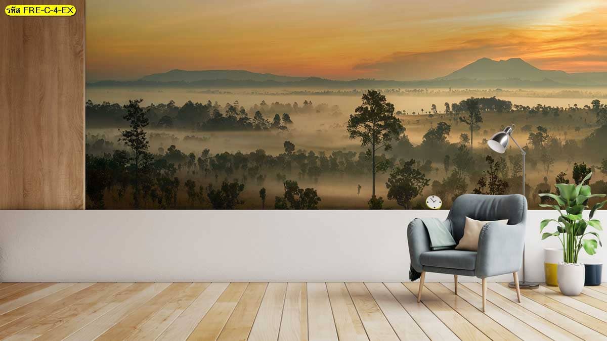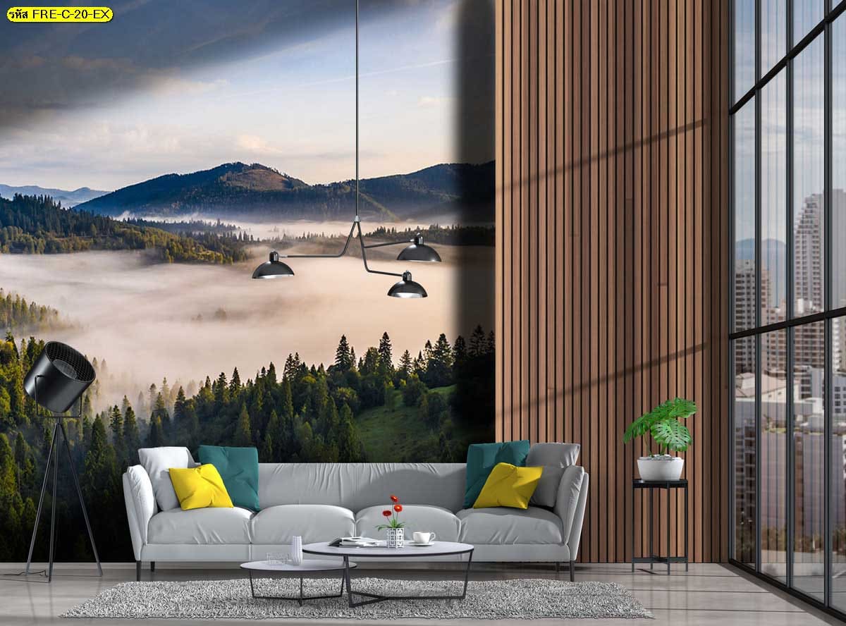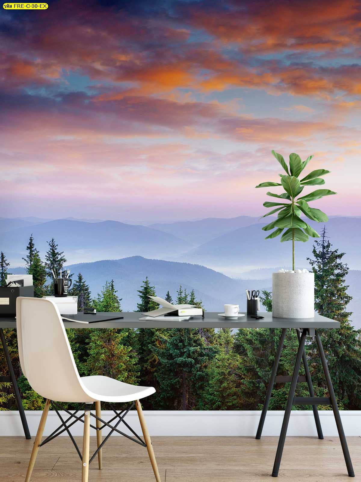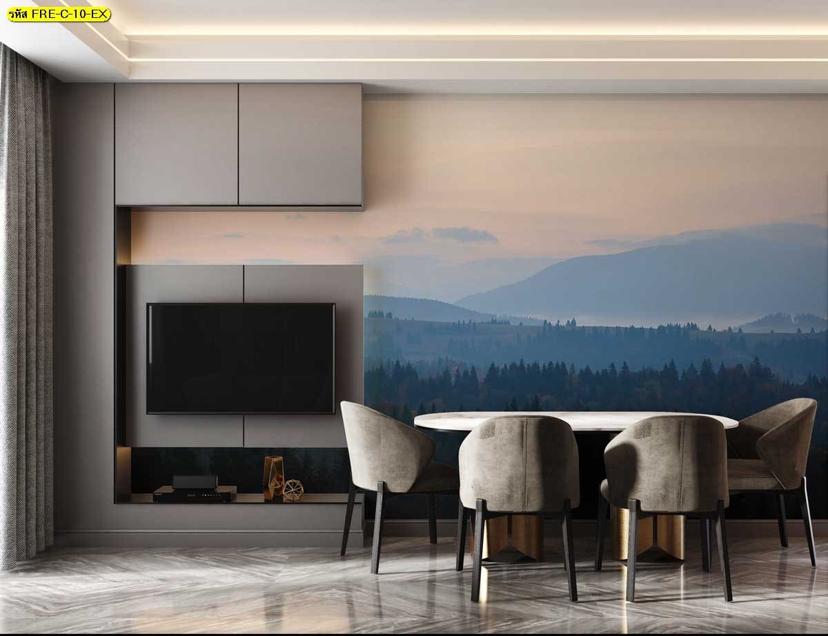 วอลเปเปอร์วิวภูเขาหมอกยามเย็น เพิ่มความนุ่มลึกให้ผนังห้อง ดูสงบและมีมิติ