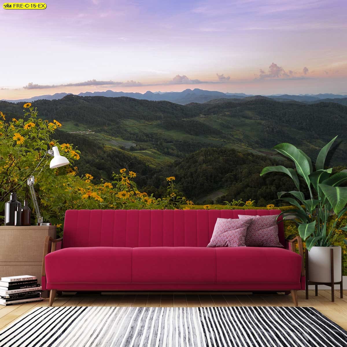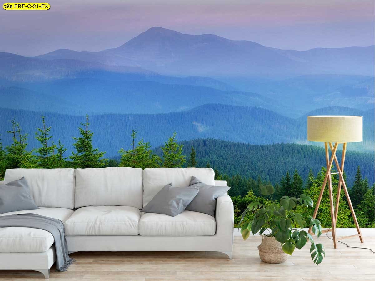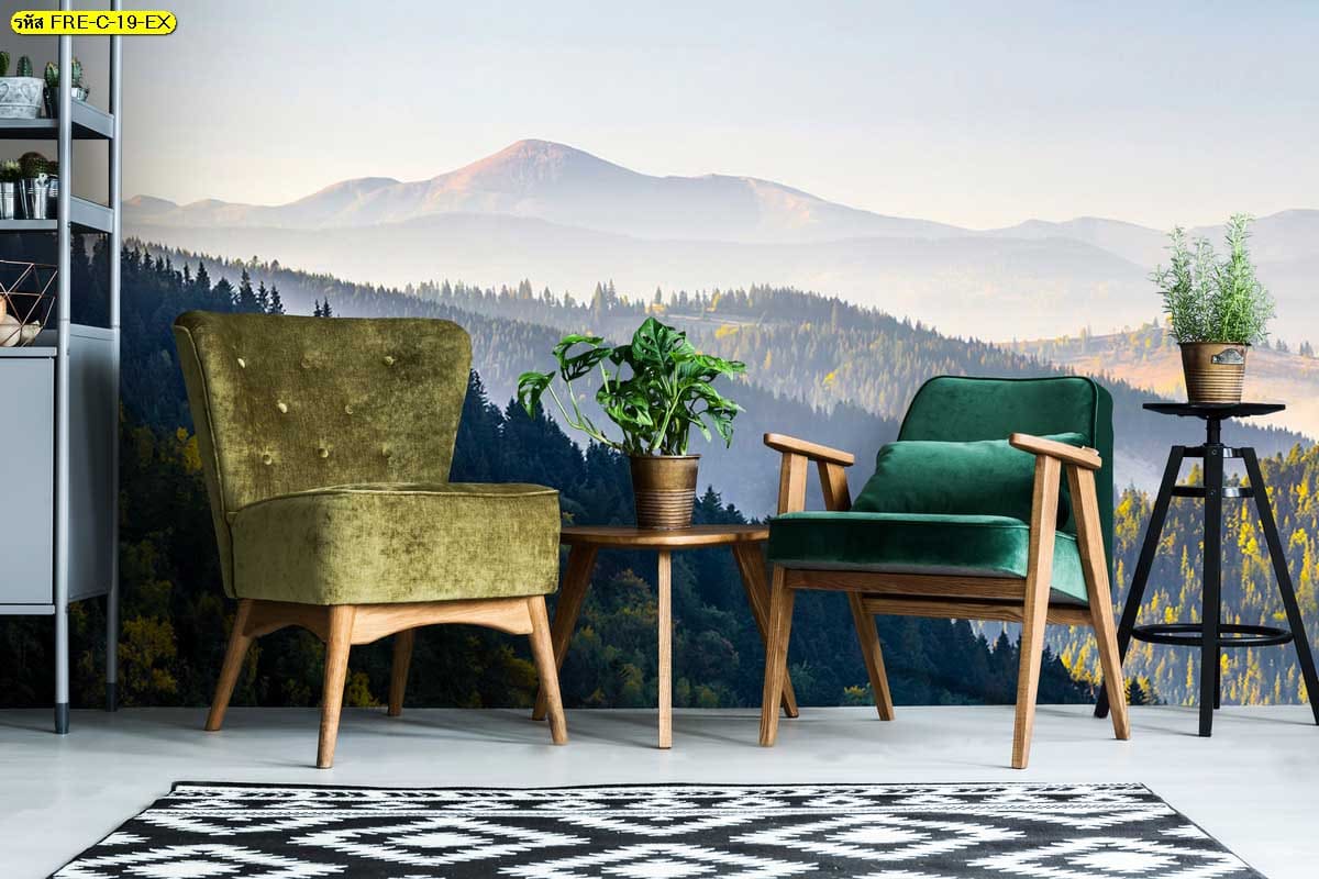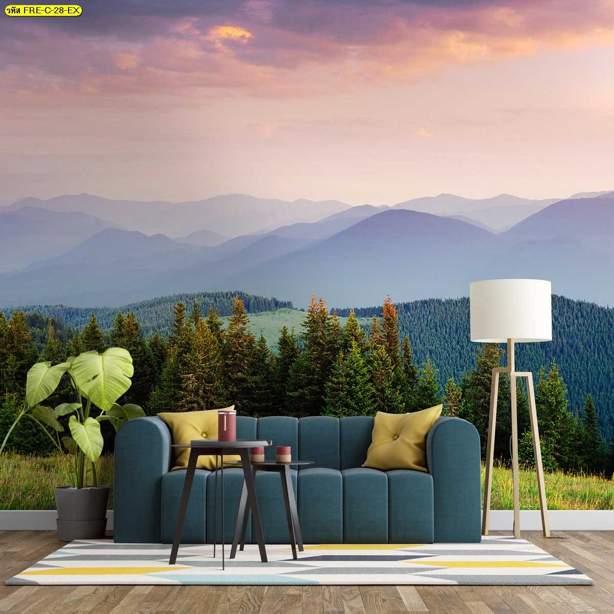 วอลเปเปอร์วิวภูเขาหมอกยามเย็น เพิ่มความนุ่มลึกให้ผนังห้อง ดูสงบและมีมิติ
