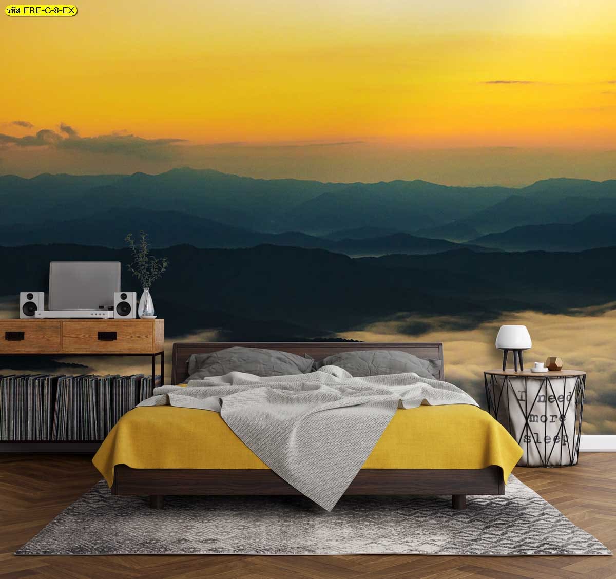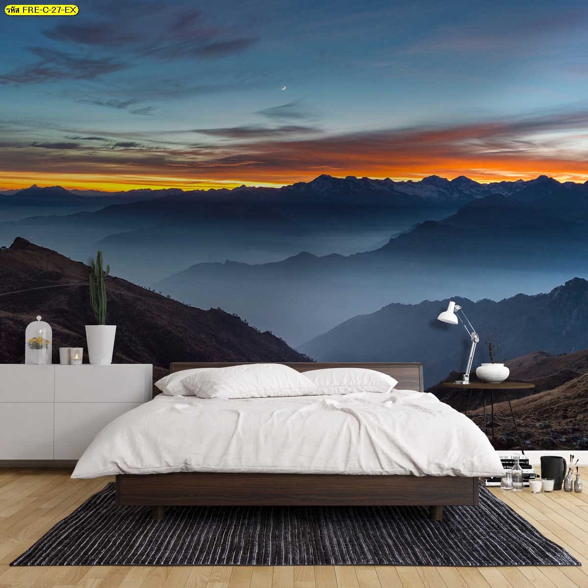 วอลเปเปอร์ภูเขาซ้อนชั้นยามเย็น เพิ่มมิติให้ผนังห้องนอน สร้างบรรยากาศผ่อนคลาย