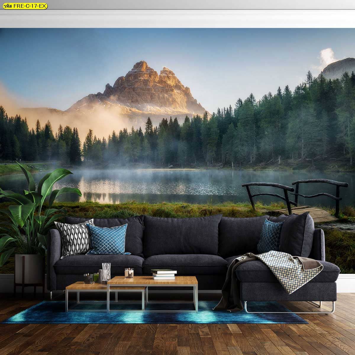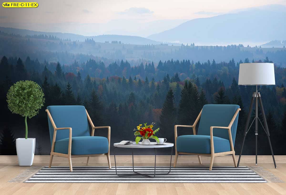 วอลเปเปอร์ติดผนังภาพสั่งพิมพ์วิวป่าสนเขียวขจี รูปติดผนังแต่งห้องที่สื่อความสดชื่นมีชีวิตชีวาที่สุด