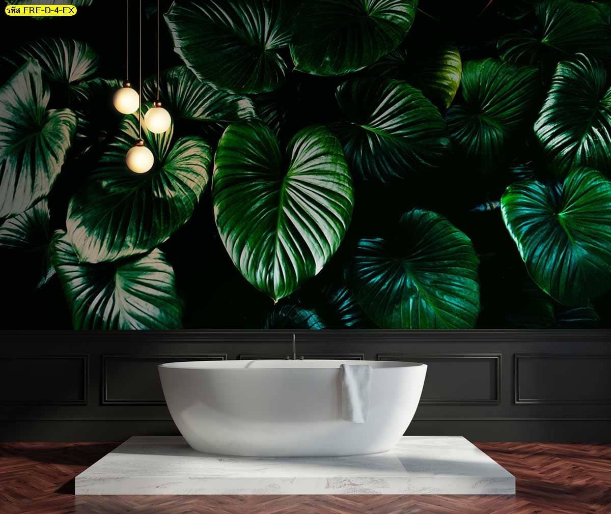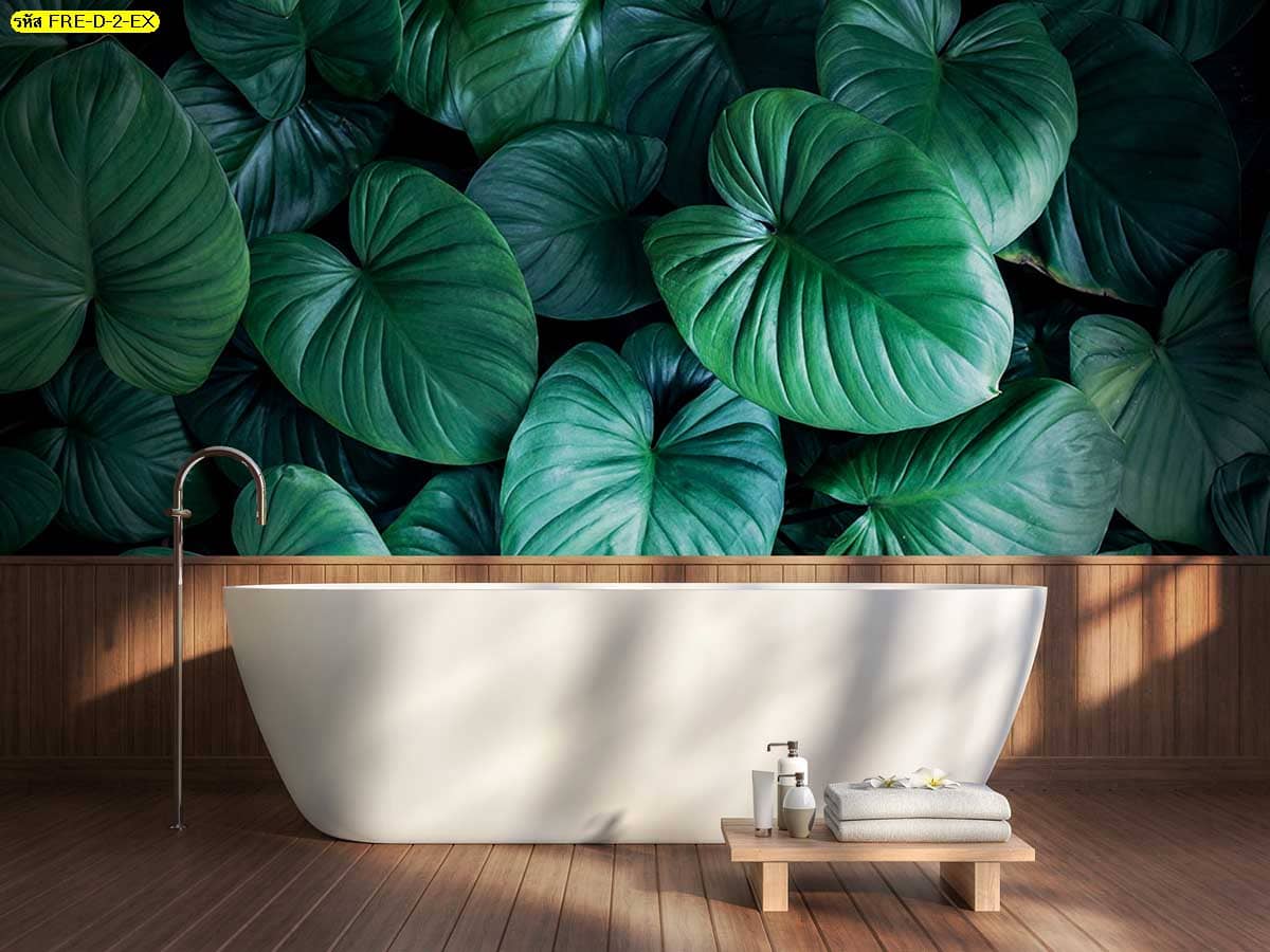 วอลเปเปอร์สั่งพิมพ์ลายใบไม้ใหญ่ ดีไซน์รูปติดผนังที่เปลี่ยนห้องน้ำให้เป็นสปาสุดหรู